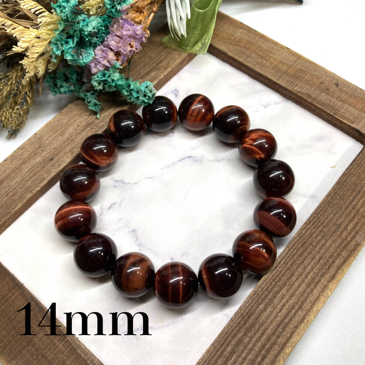 こちらは、レッドタイガーアイの14mm玉を使用したパワーストーンブレスレットです。シンプルなデザインですのでどんなコーディネートとも合わせ易いブレスレットです。インパクトがある14mm玉を使用して内周約17cmです。パワーストーンを付けてる方へのプレゼントにもお勧めです。14mmサイズのリクエストが多々ありましたので少量ですが販売しました。気になる方はお早めにどうぞ。