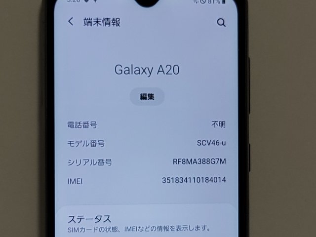 ★【66437WM】 完動品 UQmobile SCV46-u SAMSUNG Galaxy A20 ホワイト 1円 ! 1スタ !