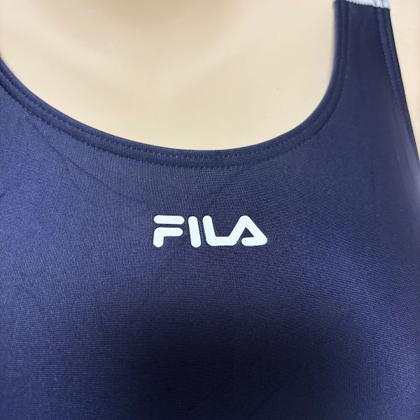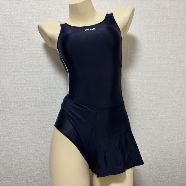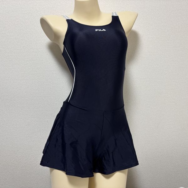 18フィラFILA女子競泳水着160(Lサイズ程度)★スカートタイプ・股上ハイレグ★光沢濃紺ネイビー白ホワイト★大きいサイズ男性も