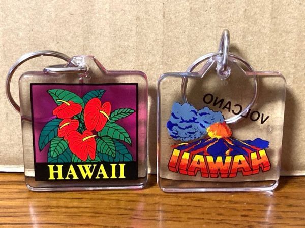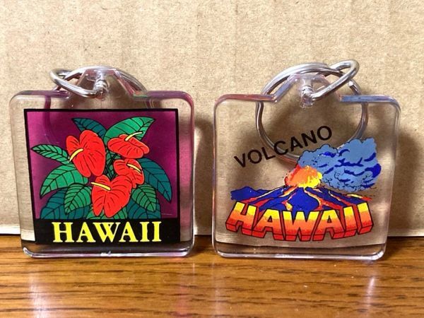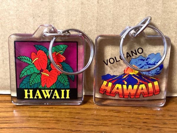 希少 ビンテージ Hawaii ハワイ VOLCANO ハイビスカス 火山 オールドハワイ オールドサーフ キーホルダー 2個セット レトロ 当時物