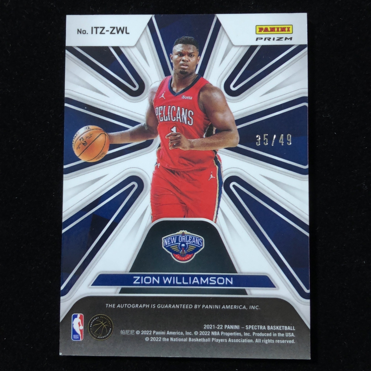 Zion Williamson ザイオン・ウィリアムソン Panini Spectra 2021-22 /49 Auto 直筆 サイン Pelicans ペリカンズ