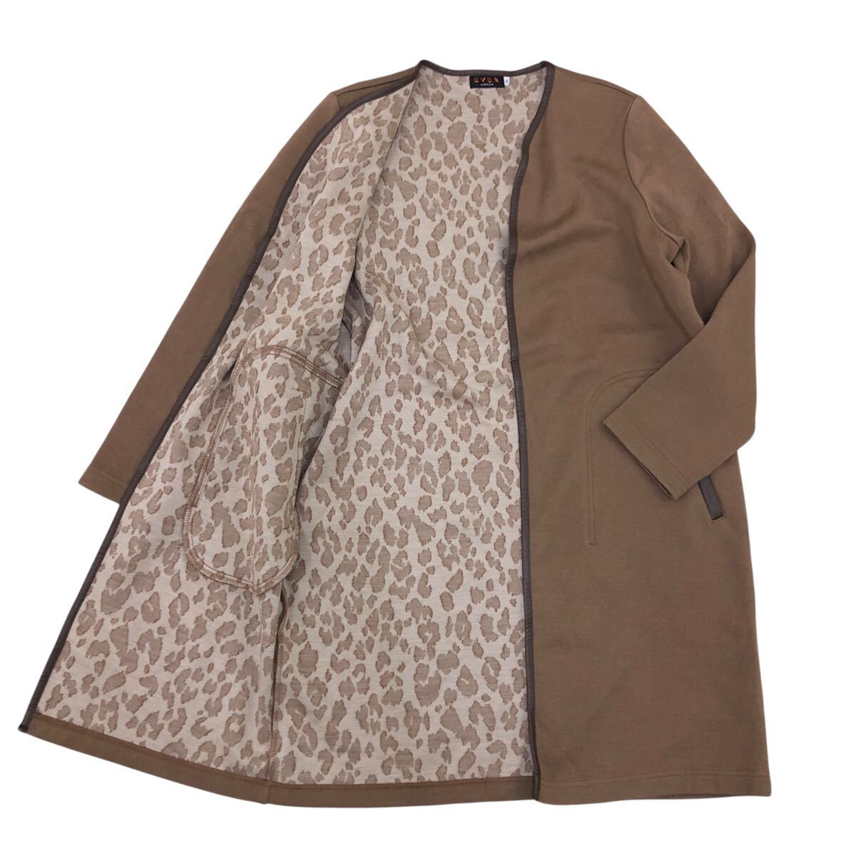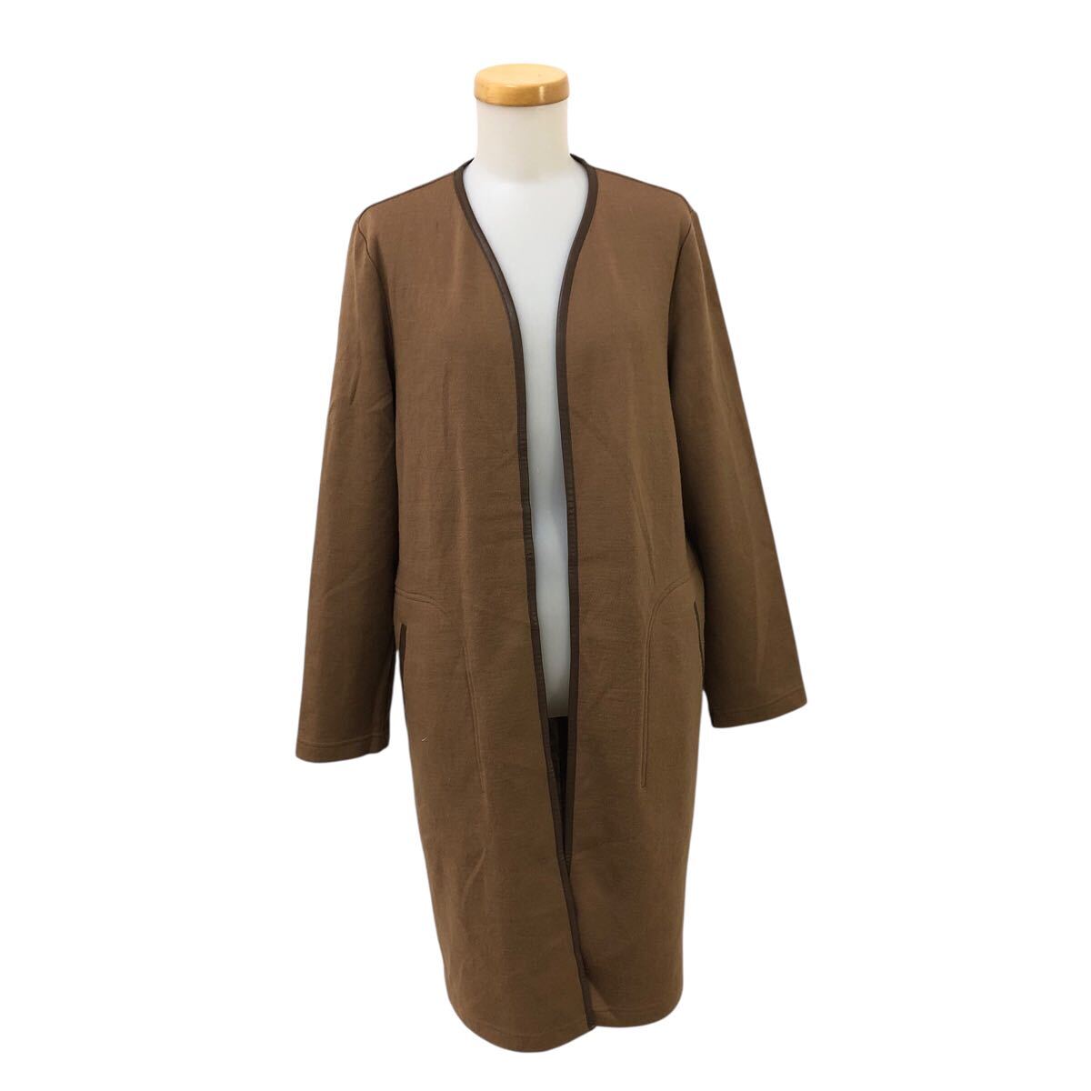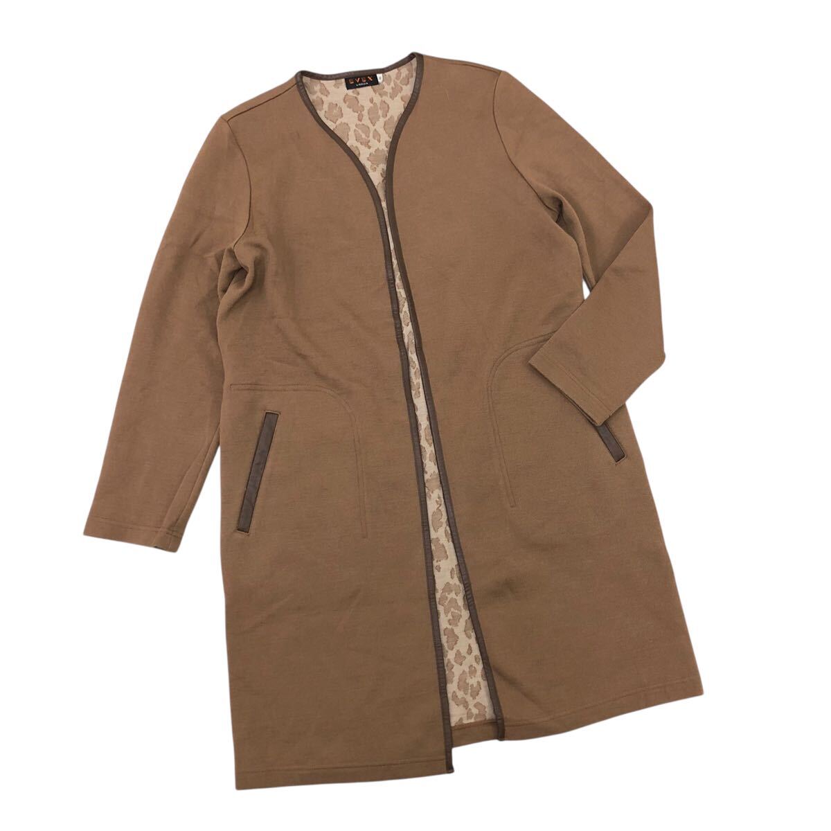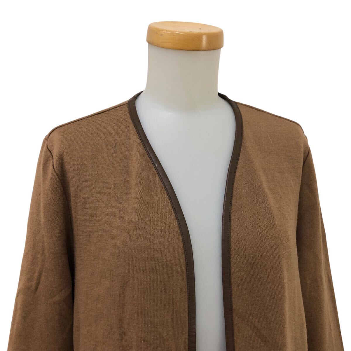 12Nm343-46 EVEX by KRIZIA エヴェックス バイ クリツィア ノーカラー エコレザー パイピング コーディガン カーディガン ブラウン系 40