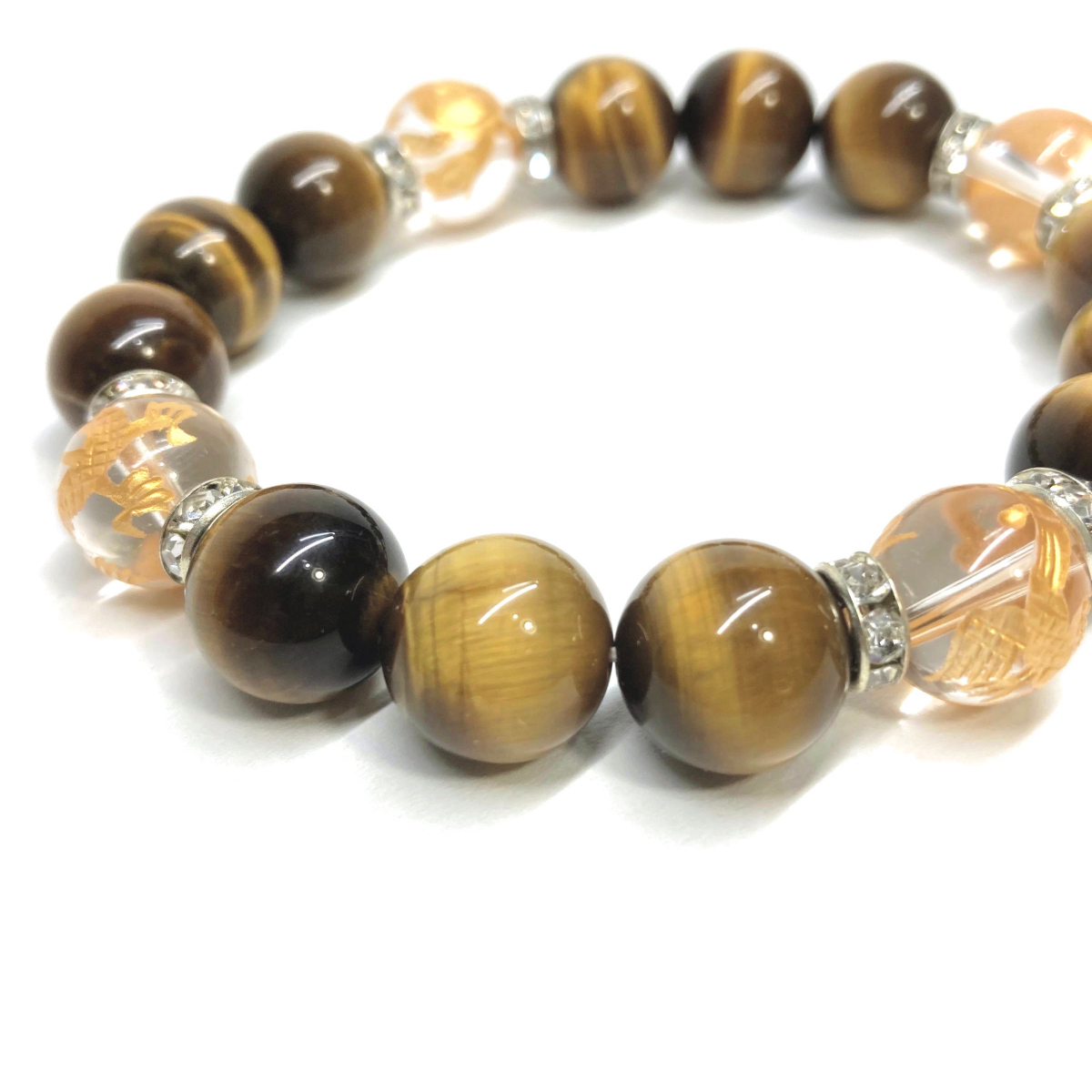 こちらは、四神獣金彫水晶とタイガーアイを組み合わせたパワーストーンブレスレットです。四神獣は、中国の伝説で4つの方向(東西南北)を守護する神聖な神。四神獣、厄災から身を守り、多くの運気を呼び込むと言われております。石大きさは程よくインパクトのある12mm玉で内周 約17cmです。 数に限りがございますので気になる方はお早めにどうぞ。