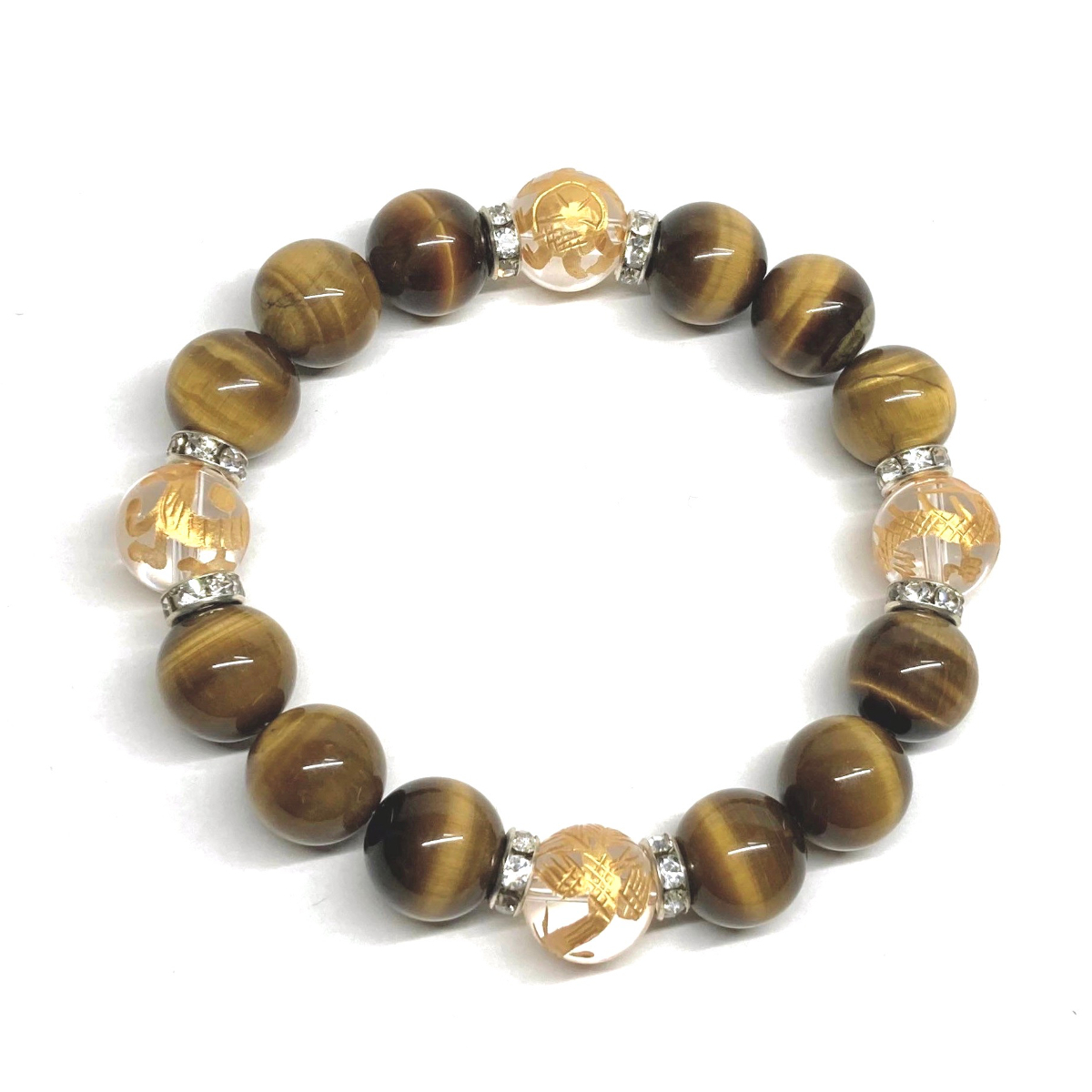 四神獣金彫水晶×タイガーアイ 12mm パワーストーン ブレスレット天然石 青龍 白虎 玄武 朱雀 運気上昇 お守り 金運 四神獸 四神相応 S