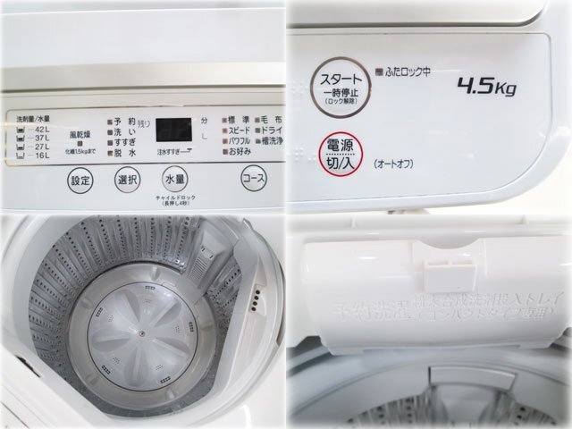ヤマダセレクト 全自動洗濯機 YWM-T45H1 を出品いたします。 ■特徴■ 時短洗濯 最短10分 黒カビ発生を抑制 ステンレス層採用で黒カビを原因とする 嫌なニオイとヨゴレが付きにくい コンパクト設計 コンパクトなのに高性能 ■仕様■