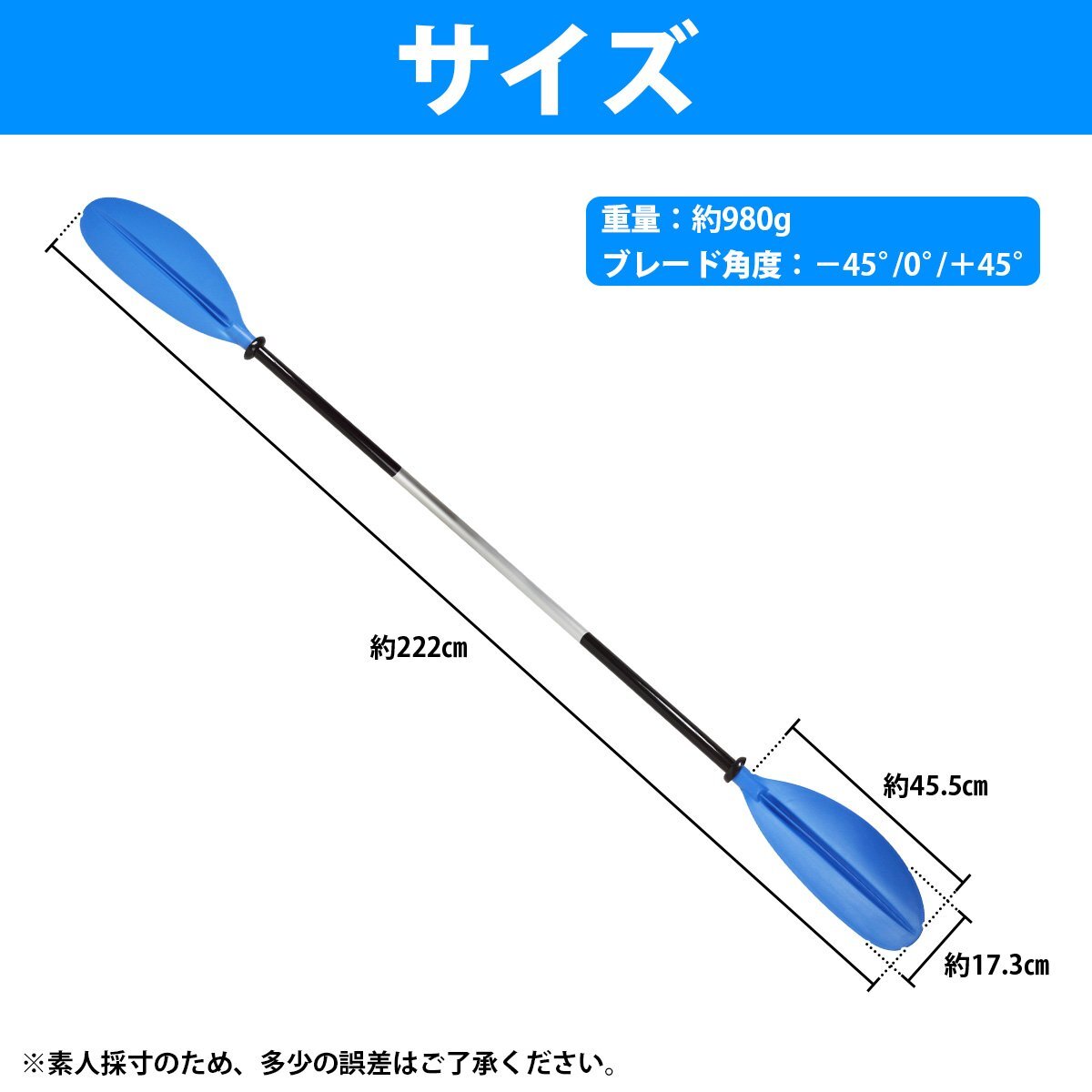 【送料無料】『全長222cm』3段階の角度調整が可能 カヤック パドル 『青/ブルー』ボート ゴムボート カヌー アルミ製 オール 海 川 湖