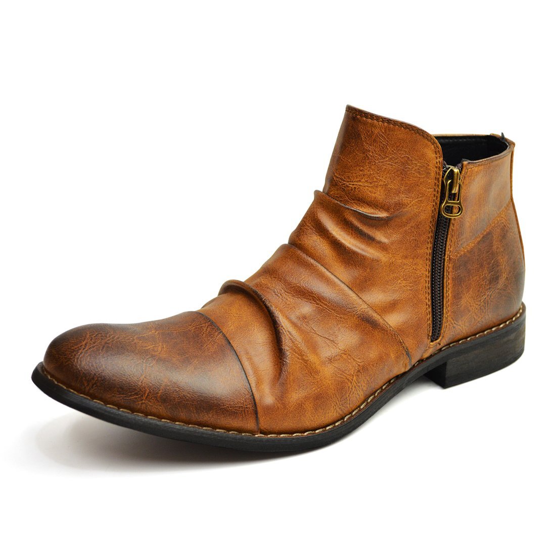 新品■ Wサイドジッパー ドレープブーツ Men's アンティーク ブーツ ショート丈 アンクル丈 メンズ キレイめ ビンテージ 男 靴 ze2789