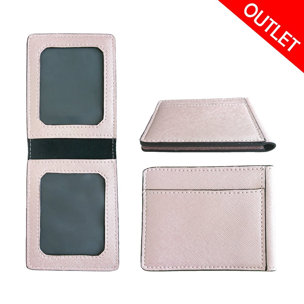アウトレット【C10907-B】送料無料 本革 パスケース E. ピンクゴールド 定期 免許証 IC カード ケース 入れ 二つ折り 2面 2枚