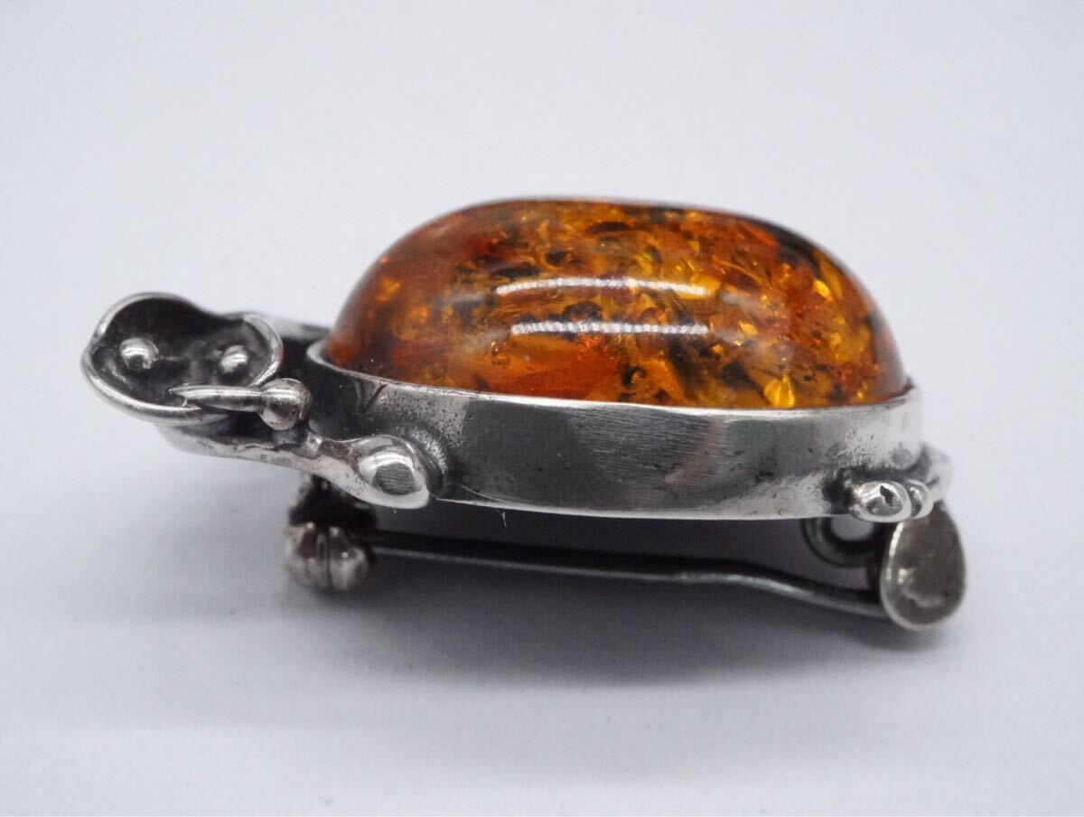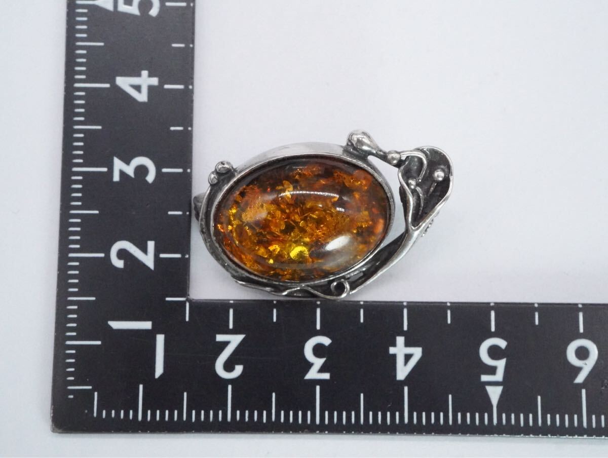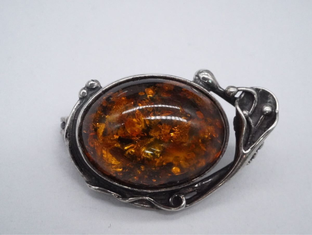【201】琥珀 こはく アンバー SILVER シルバー 925 ブローチ アクセサリー TIA