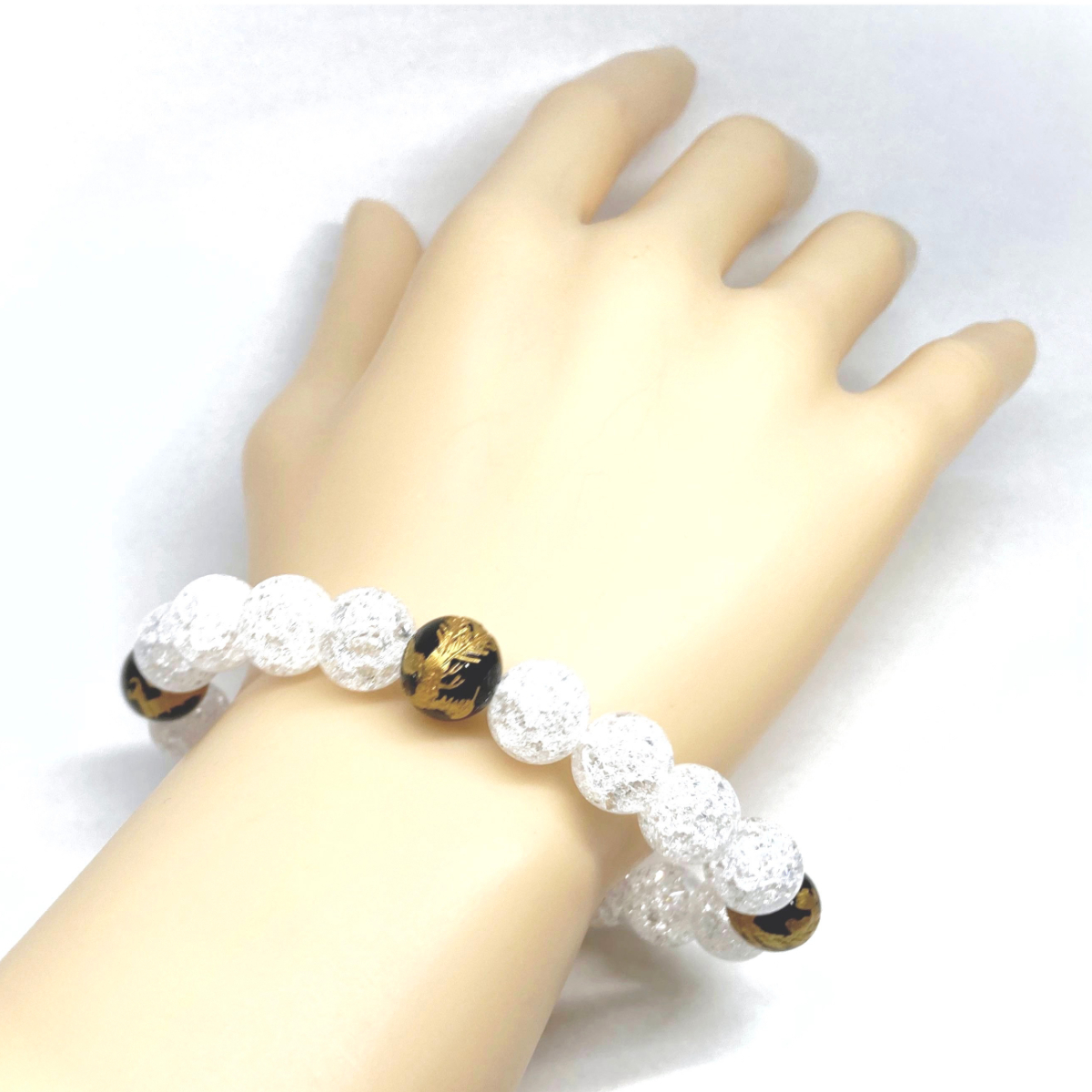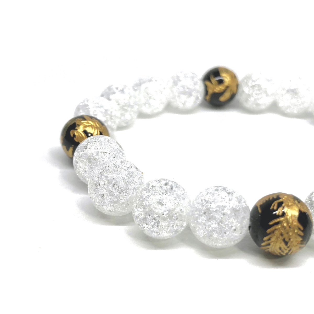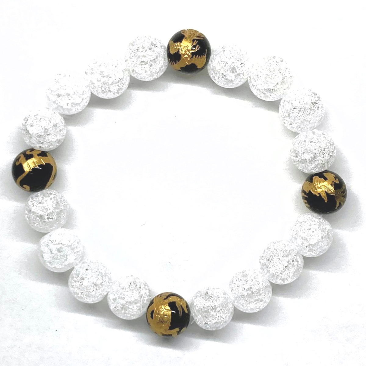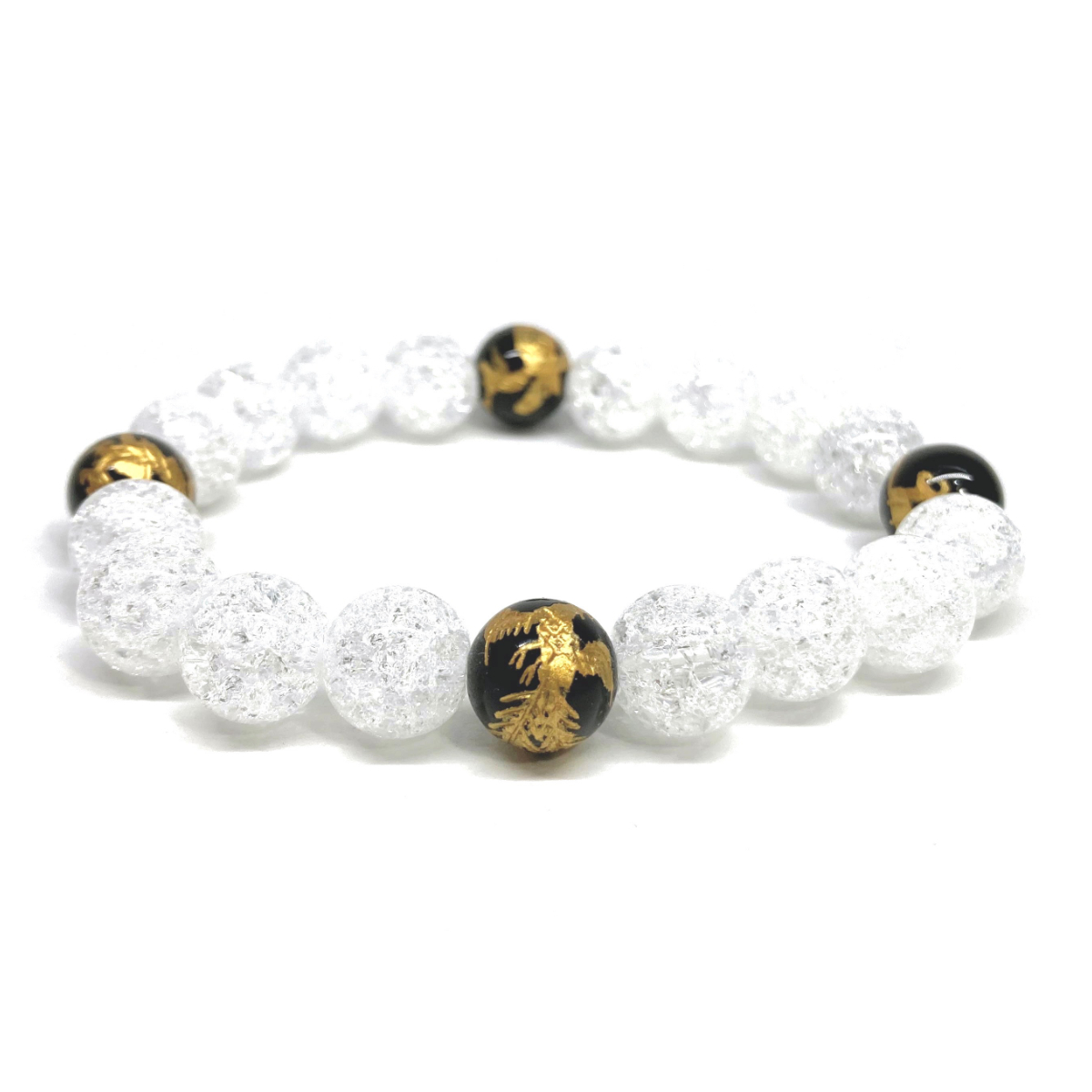 10mm 四神獣金彫オニキス×クラック水晶 パワーストーン ブレスレット天然石 運気上昇 開運 金運 恋愛運 青龍 白虎 玄武 朱雀 ☆