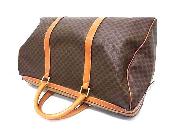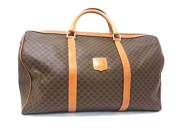 1円 CELINE セリーヌ マカダム柄 PVC×レザー ボストンバッグ トラベルバッグ 旅行かばん レディース ブラウン系 FS8027
