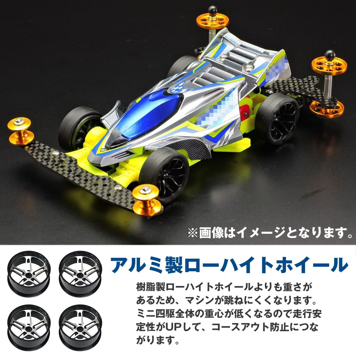 【送料220円】ミニ四駆用 4個セット アルミホイール ブラック デュアル 5スポーク 5穴 ローハイトタイヤ ホイル ホイール 黒 シルバー