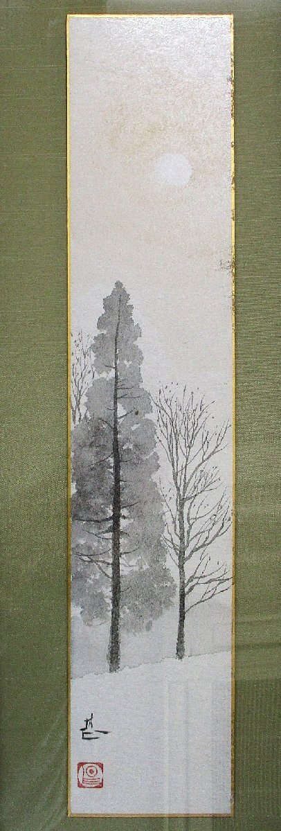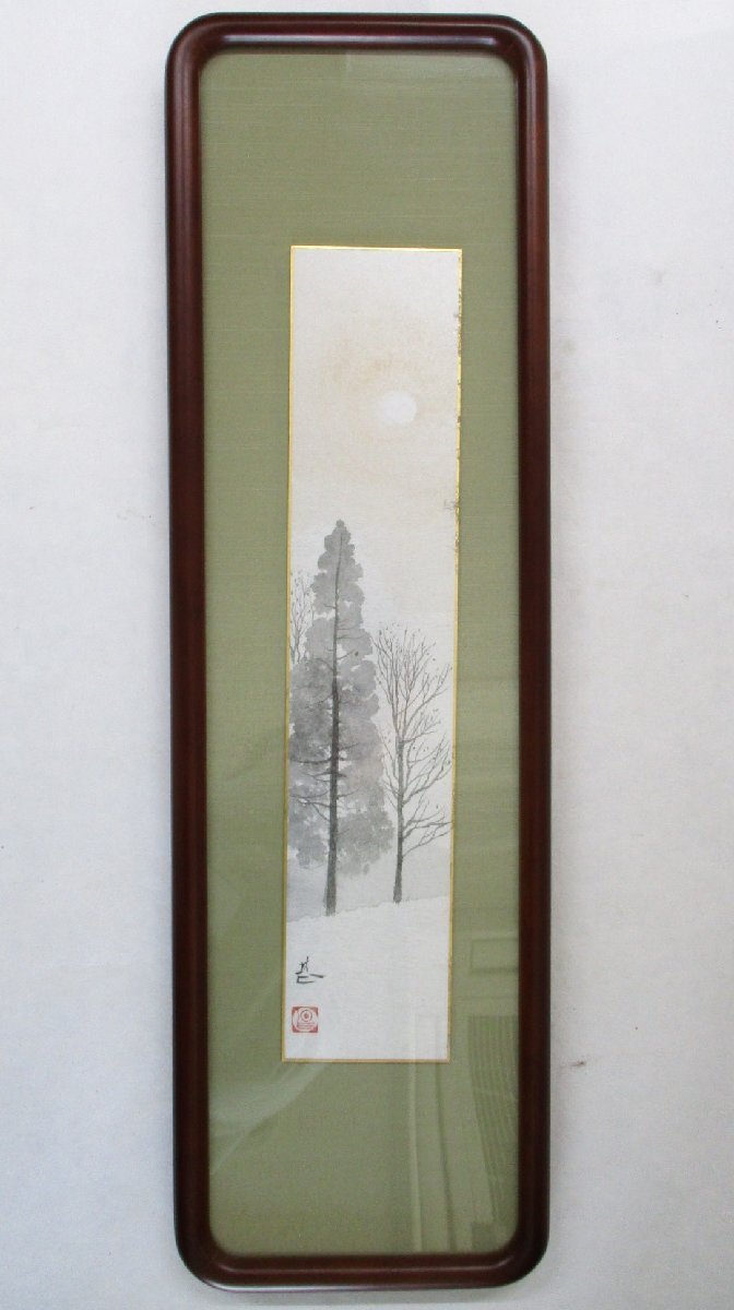 ★☆ 真作保証【 高越甚 作 短冊 山水画 サイン・落款有り 額付 】富山県出身 師;堂本印象 外務省お買上 ☆★