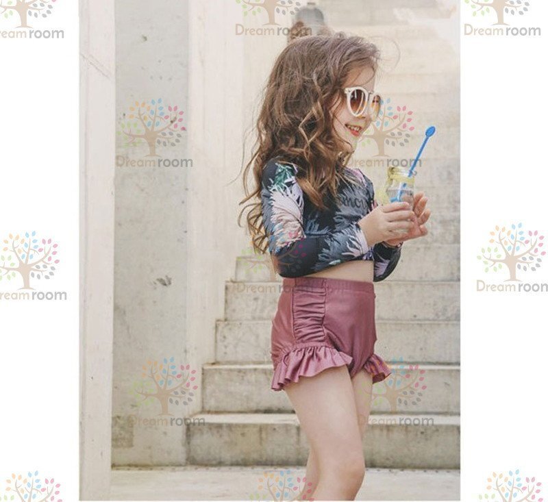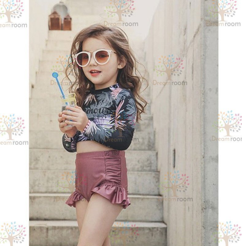 1スタ☆ラッシュガード セパレート水着 上下セットアップ パープル【2XL】115-125cm 子供服 女の子 レギンス 長袖 ズボン 日よけ ビキニ 海 プール swi-109
