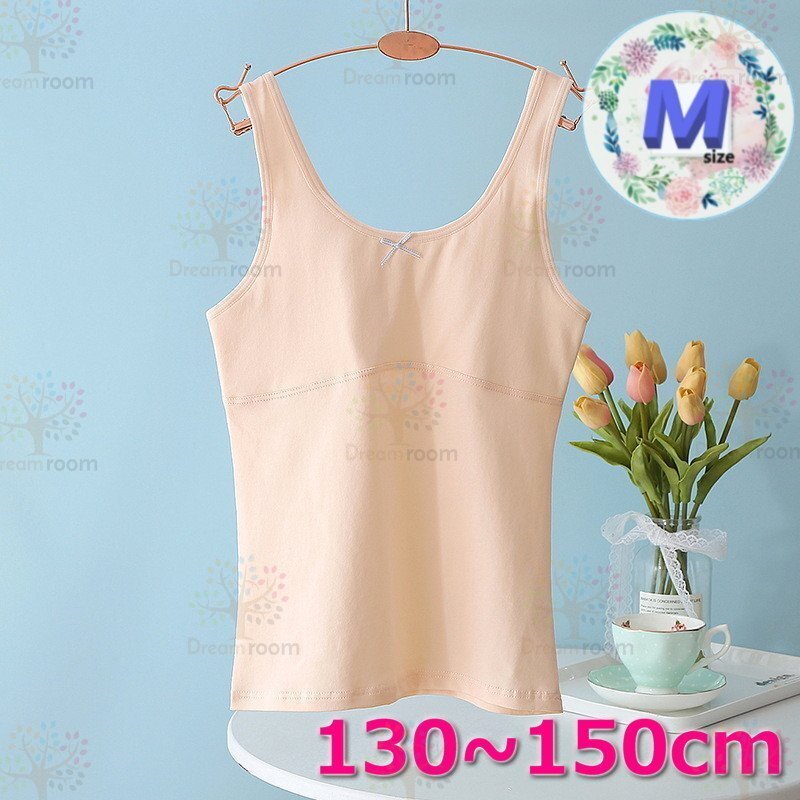 kids 通気性◎ タンクトップ 【M】ベージュ 130-150cm 夏 スポーツブラ 子供 ファーストブラジャーインナー K-405-08