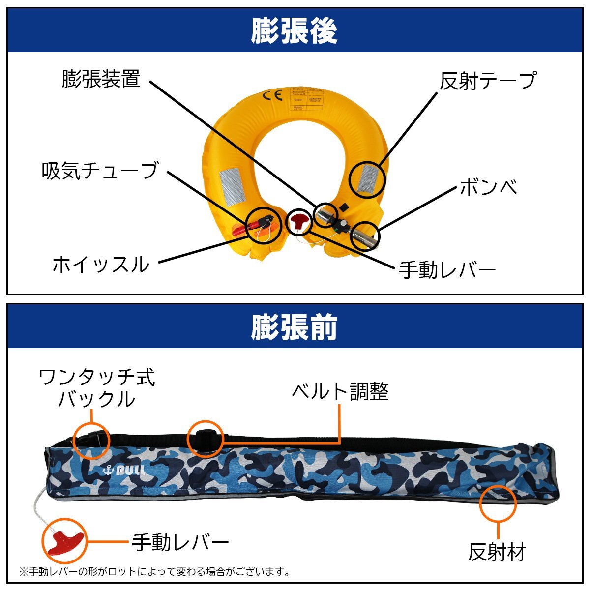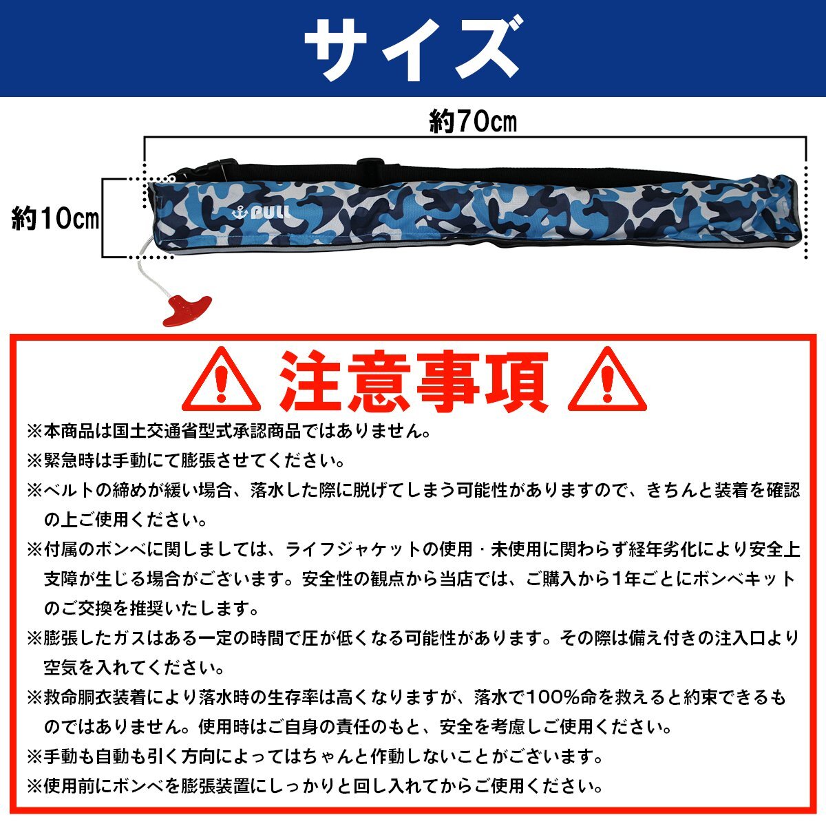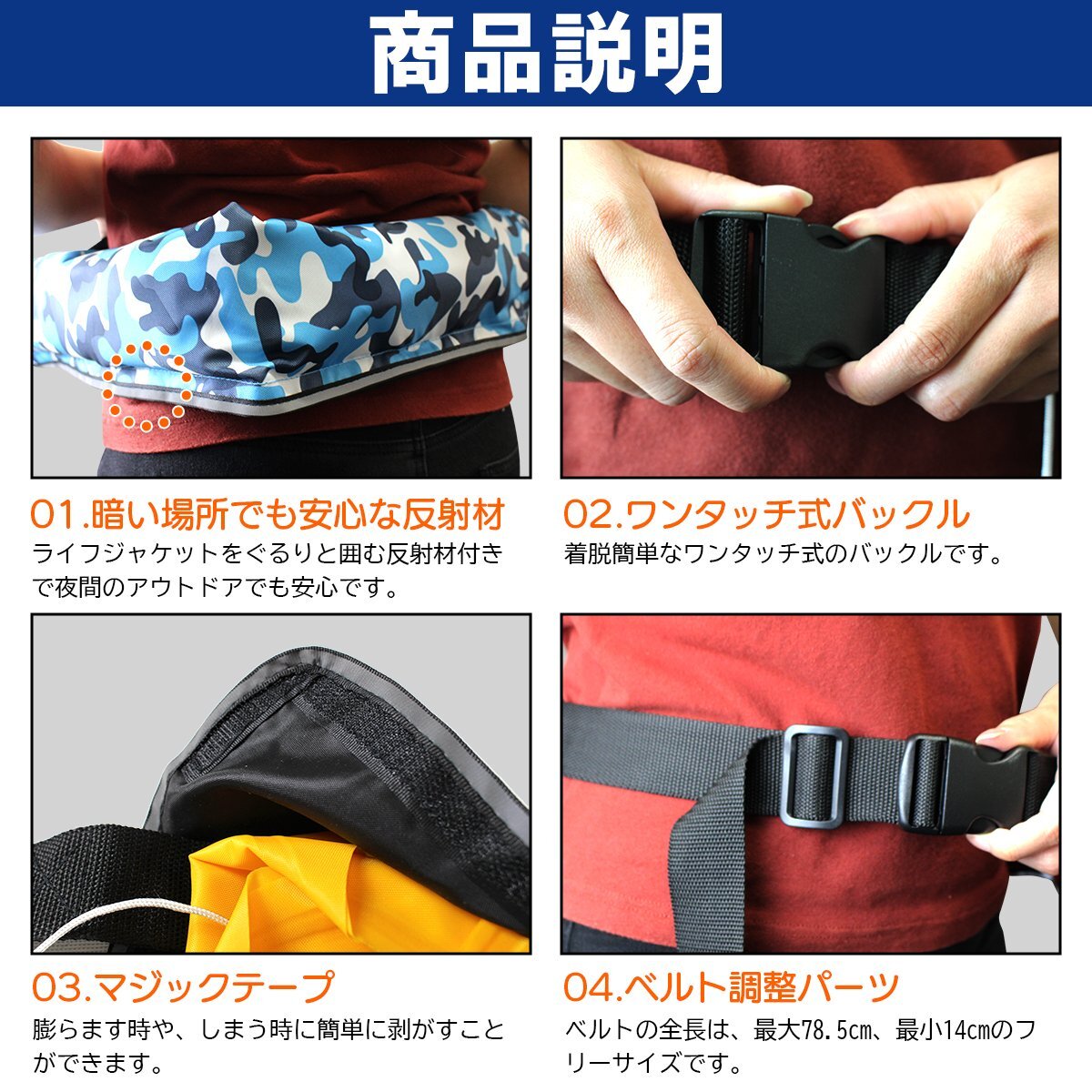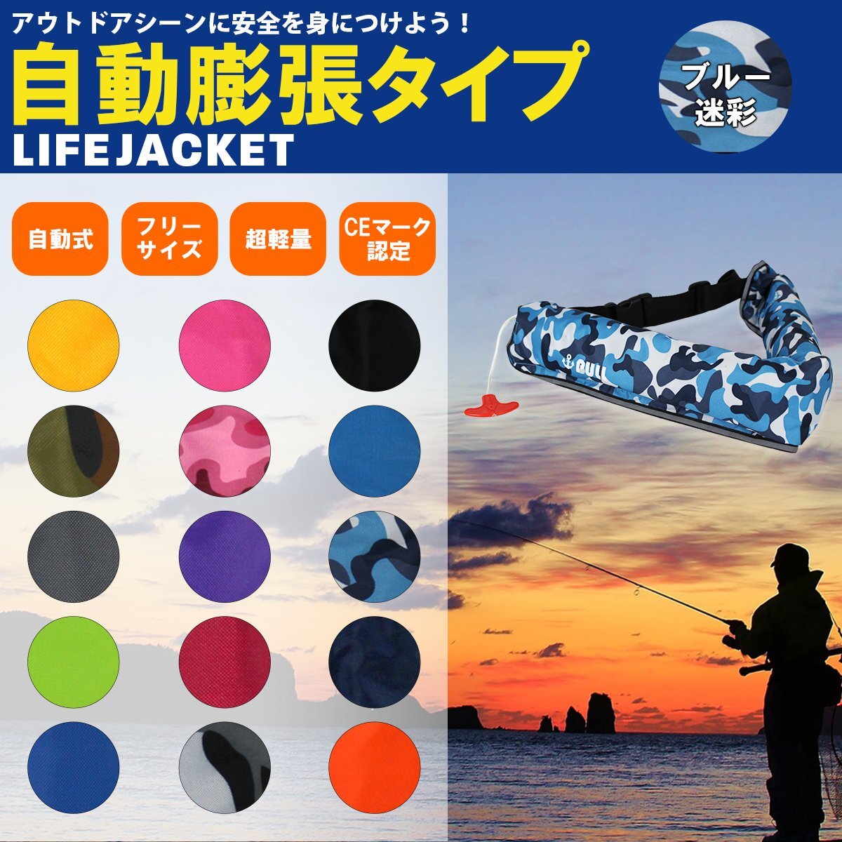 オリジナルカラー多数! ライフジャケット 自動膨張式 腰巻 腰 ベルトタイプ 迷彩 ブルー 青 ウェスト固定式 ※男女兼用! フリーサイズ
