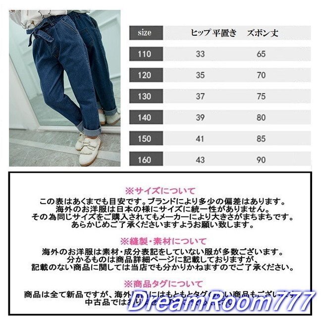 【120cm】ロールアップ ハイウエスト デニムパンツ 子供服 女の子 男の子 ボーイズデニム 韓国子供服