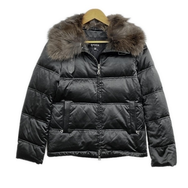 エポカ EPOCA ダウンジャケット サイズ40 M - 黒×ダークブラウン レディース 長袖/フォックス/ジップアップ/冬 ジャケット