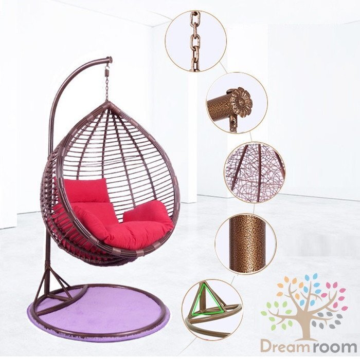お洒落な ハンギングチェア クッション付 ブラウン 03 ハンモックチェア ゆりかごチェア 吊かご アジアン 1人掛け ソファ リゾート
