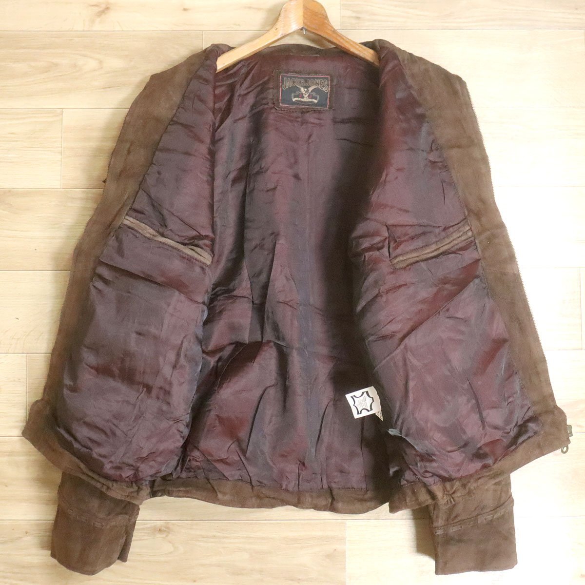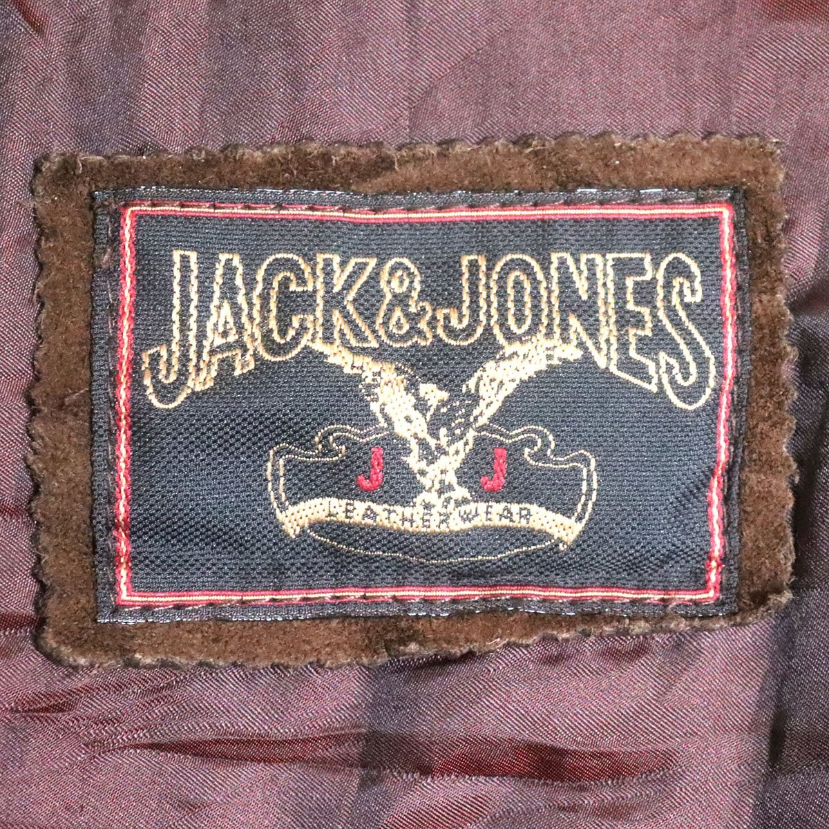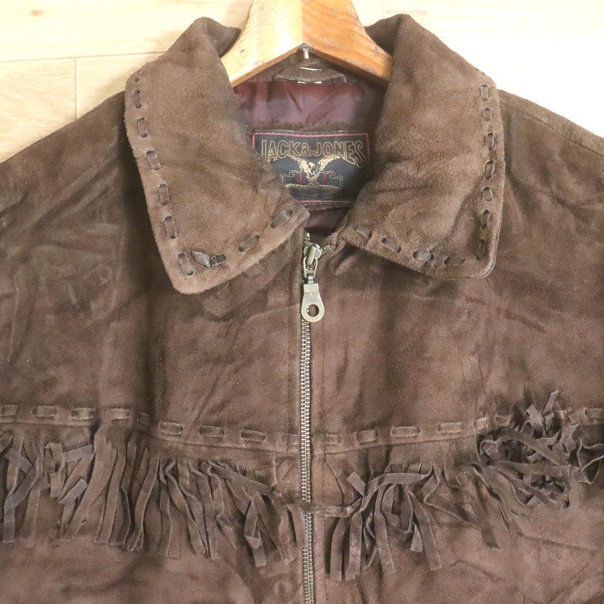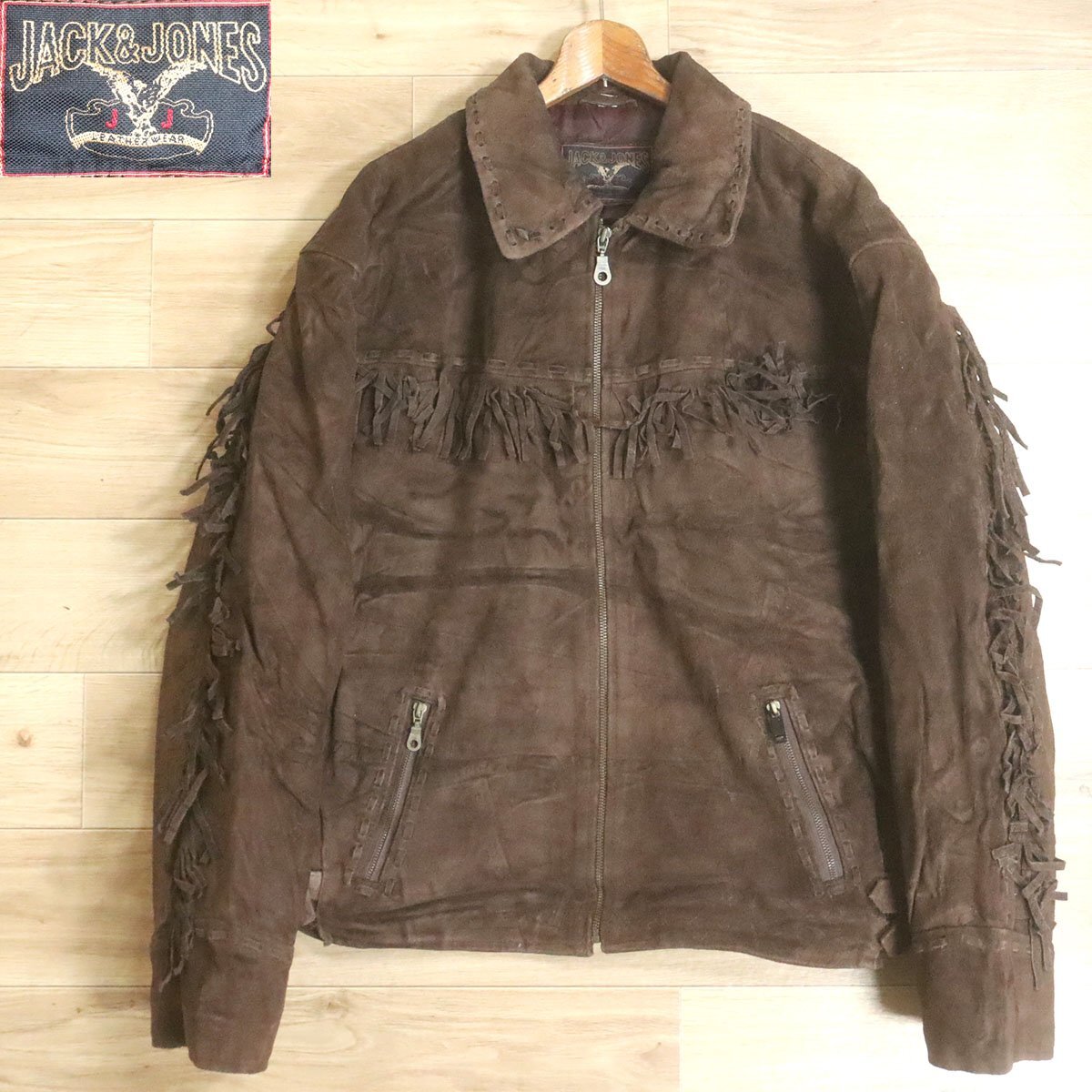@2K/Y12.3-4 JACK&JONES スエード レザージャケット 本革 フリンジ スウェード レザーブルゾン 革ジャン 皮ジャン L