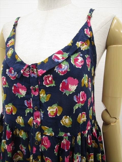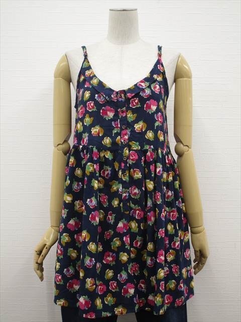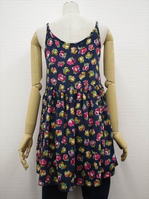 キャミソール M ネイビー×ローズ×マスタード×グリーン 花柄 【メール便可】