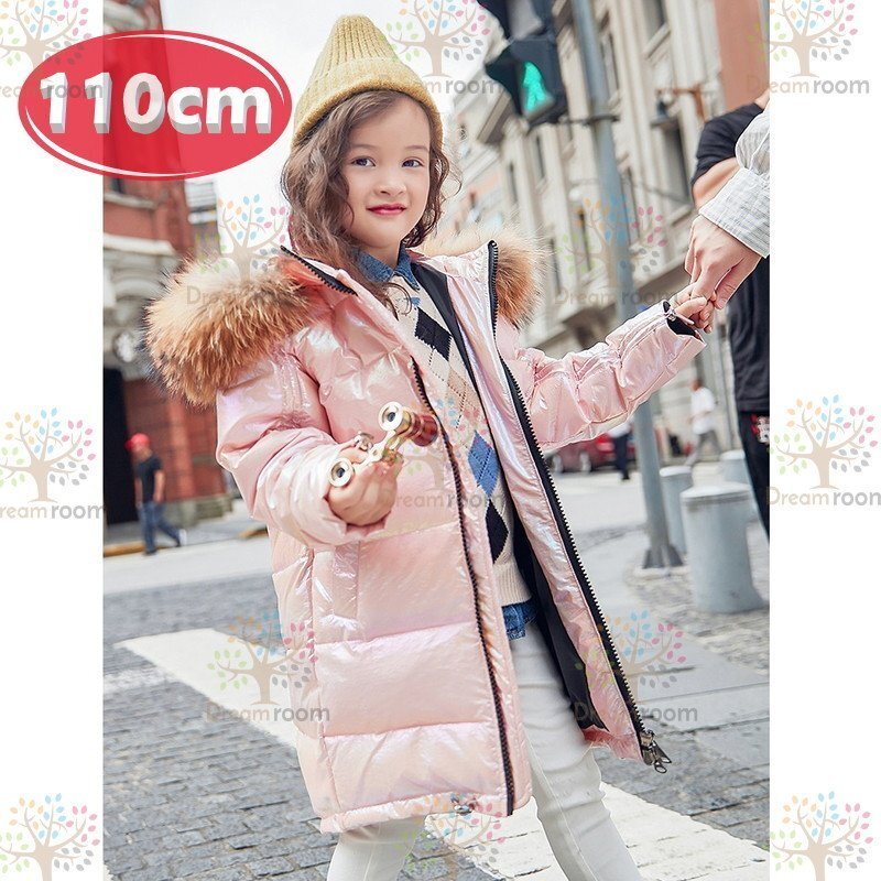 kids シャイニー ダウンコート ロングコート ピンク【110cm】中綿 防水 子供 冬物 冬服 K-303