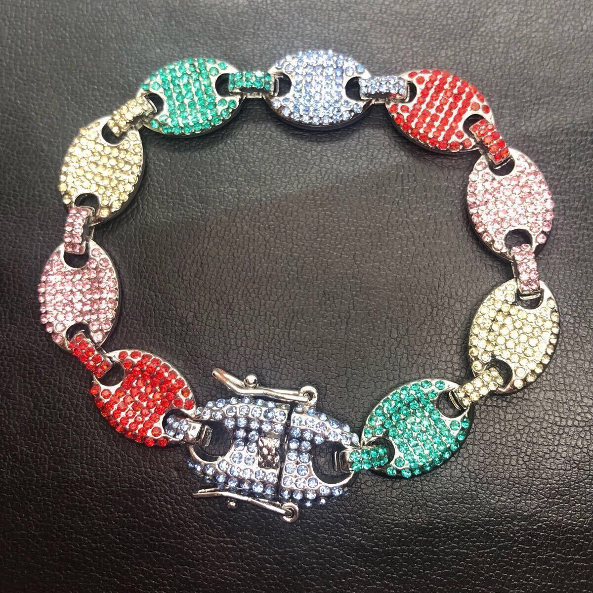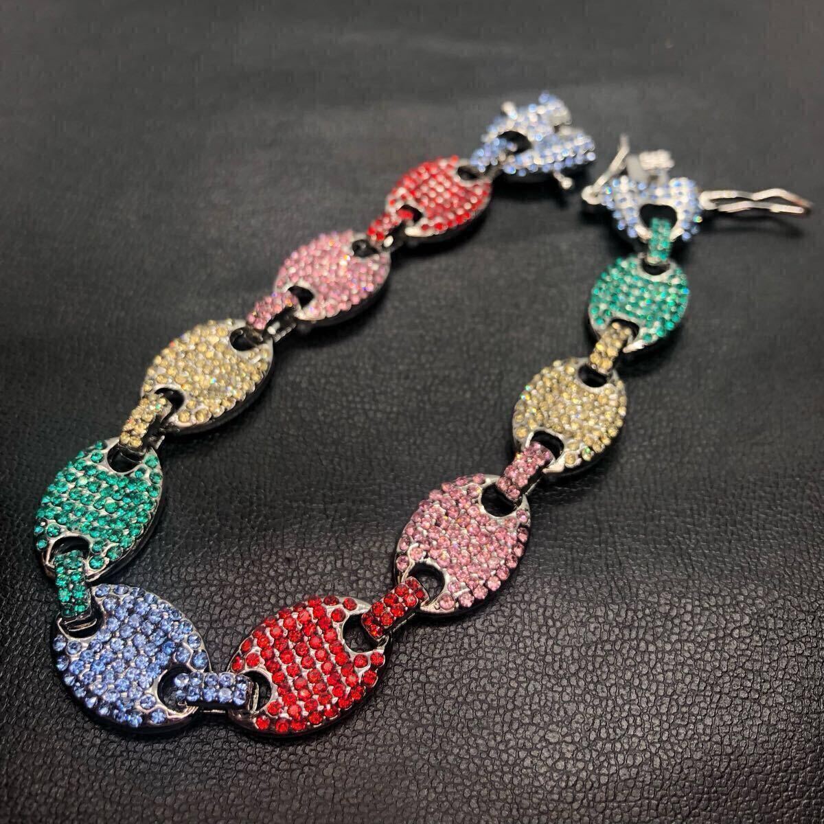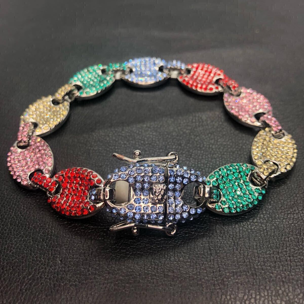 【新品】ブレスレット 21cm シルバー レインボー マルチ カラー あずき プレート チェーン ブリンブリン hiphop アクセサリー メンズ ストリート