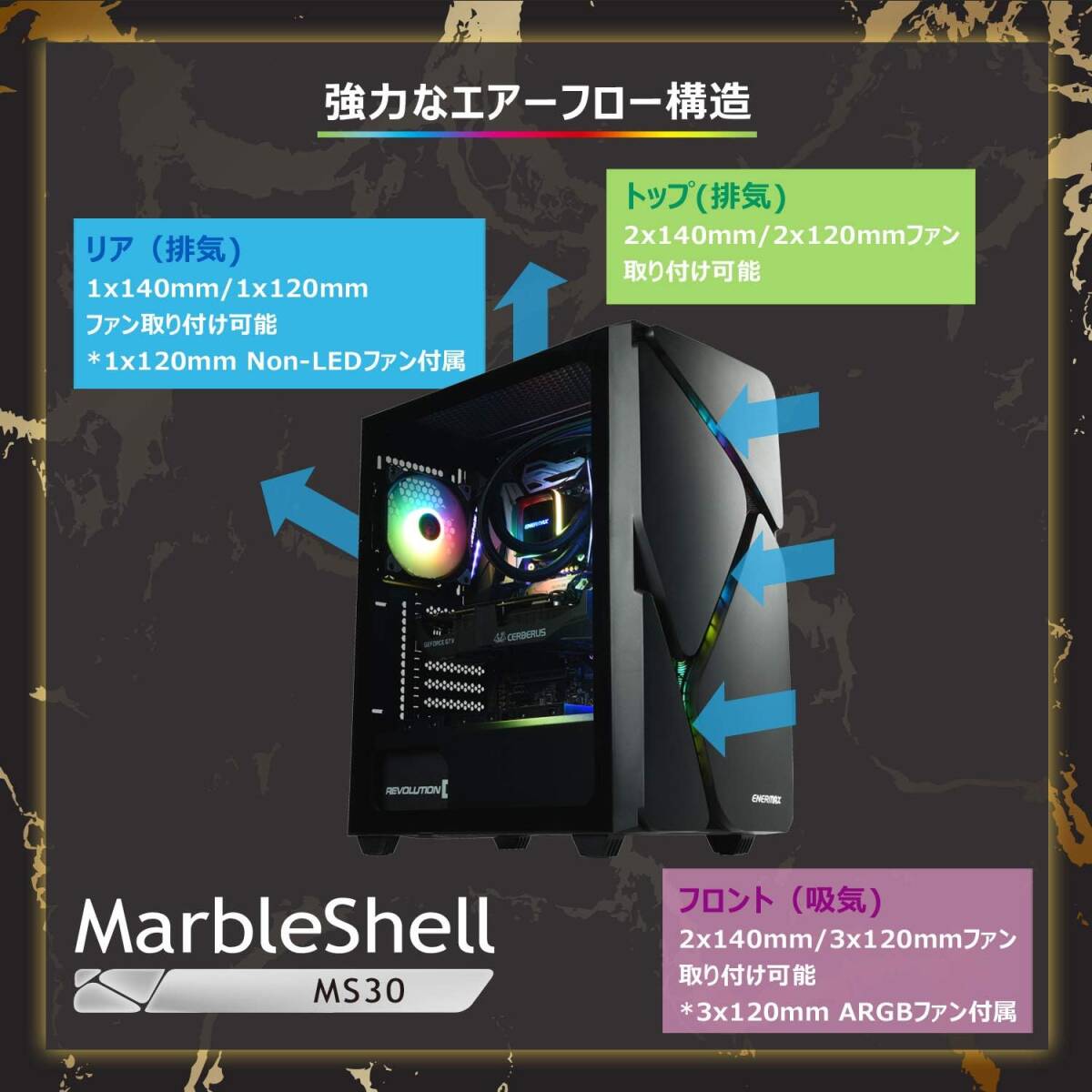 新品 ENERMAX MarbleShell MS30 ミドルタワー型PCケース 強化ガラス ブラック [ ECA-MS30-BB-ARGB ]