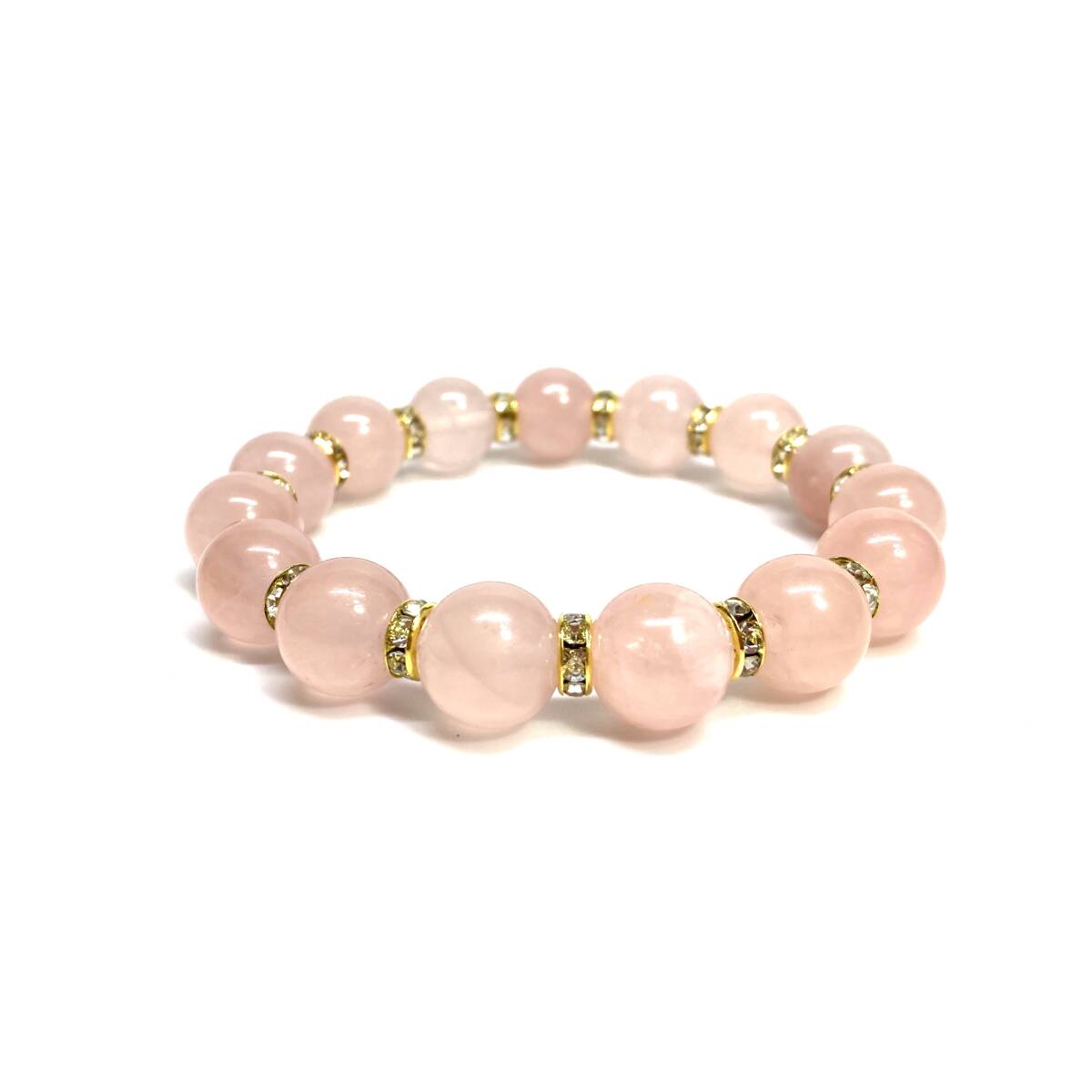 ローズクォーツ パワーストーン ブレスレット 12mm 天然石ブレス (ゴールド) 数珠ブレス メンズ・レディース 男性 女性 幸運 開運 浄化