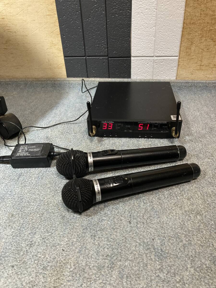 | ★☆無線ワイヤレスマイク2本 &受信機、バッテリー卓上ホルダーなし☆★ | ||