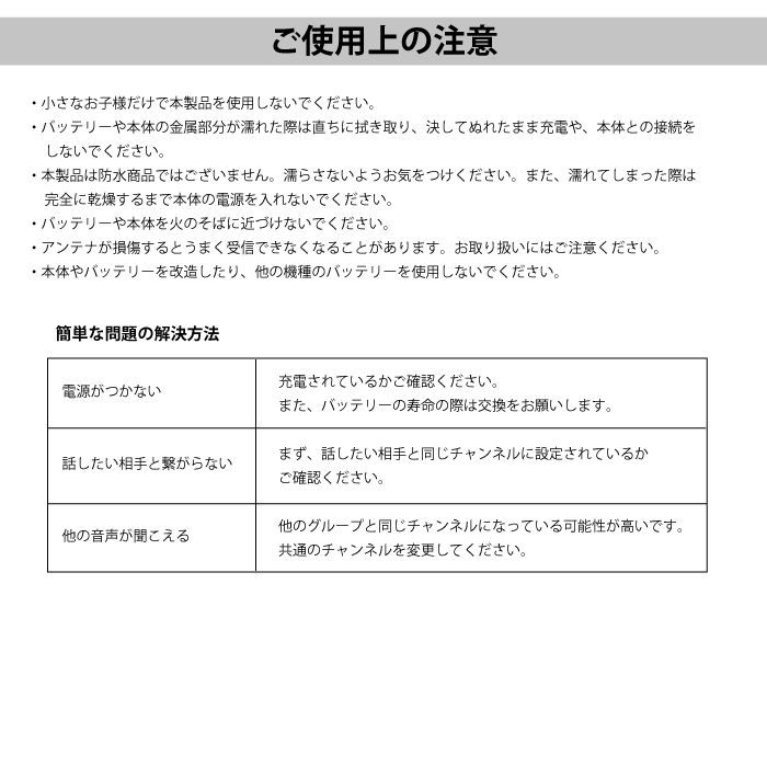 通話距離:通常3km  ※使用環境より最大交信距離は異なります