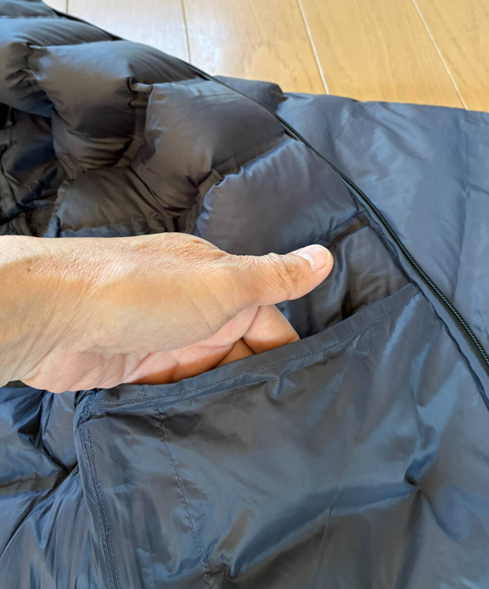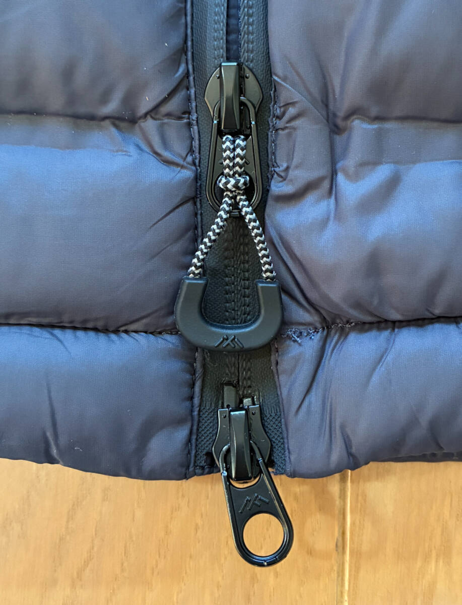 メインジッパーは、ダブルジッパーで、下からの解放も可能です。