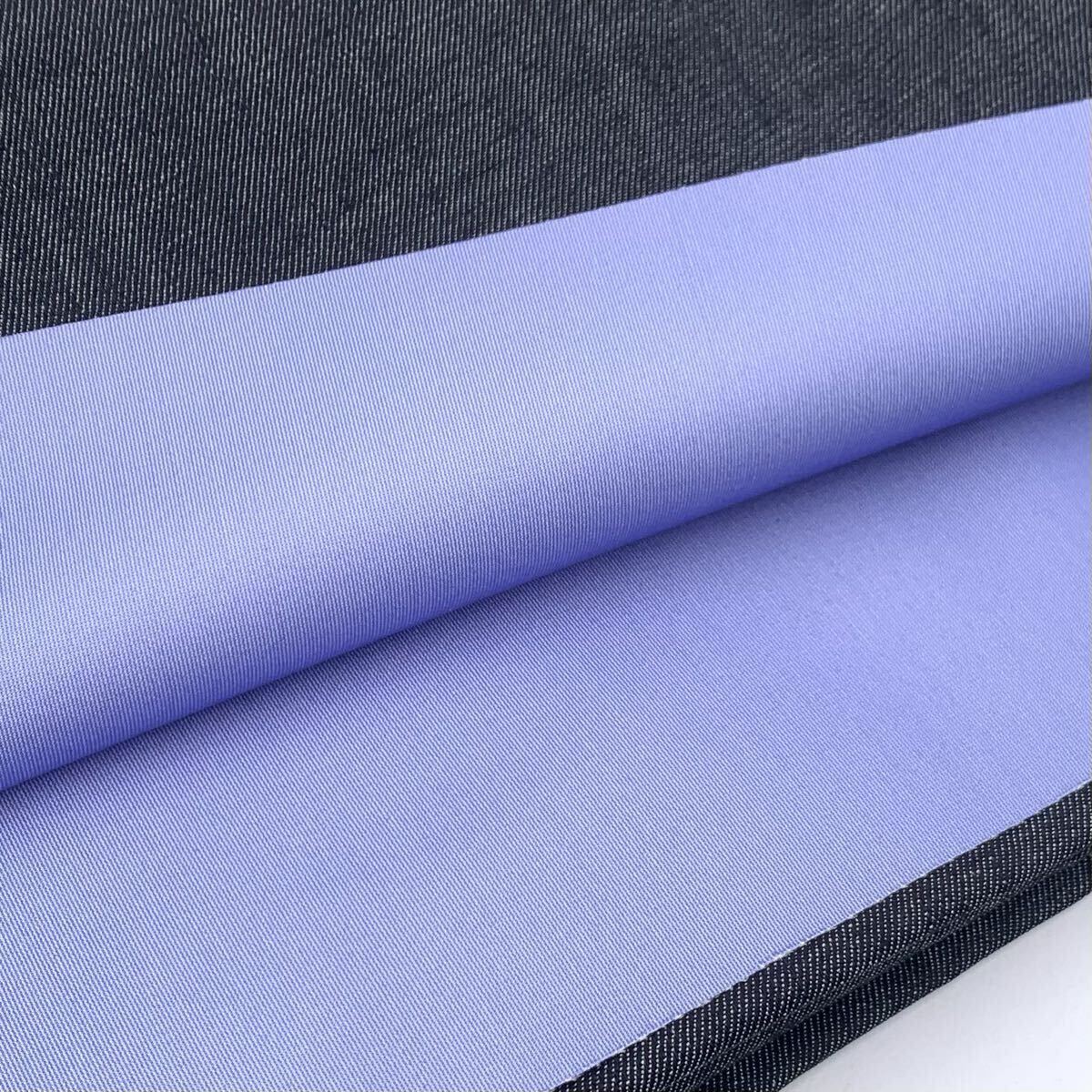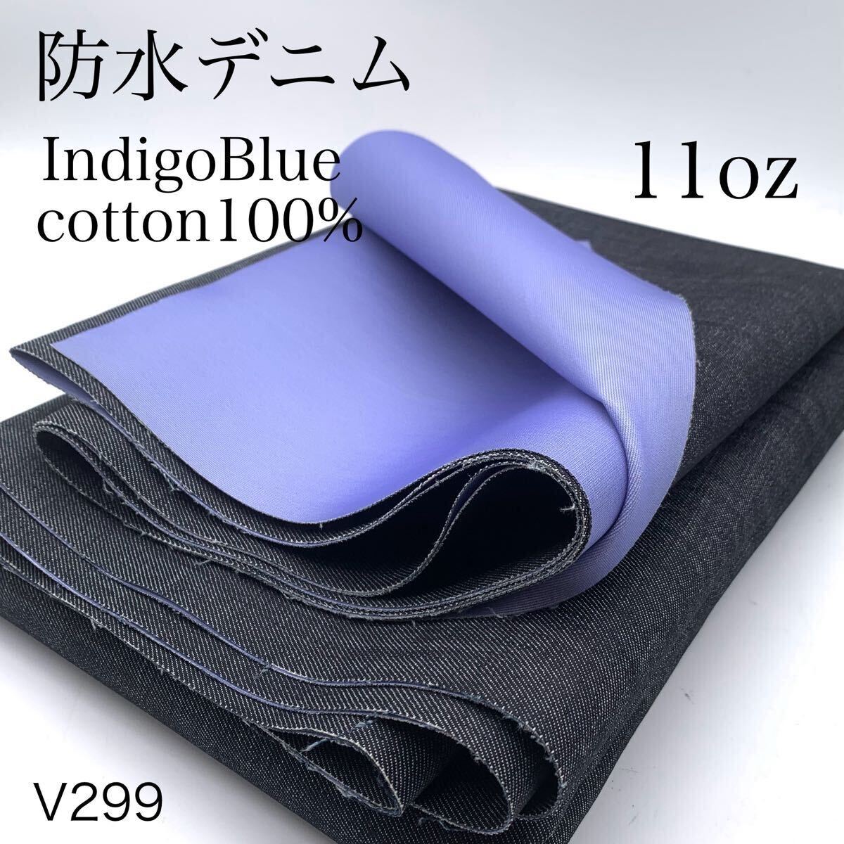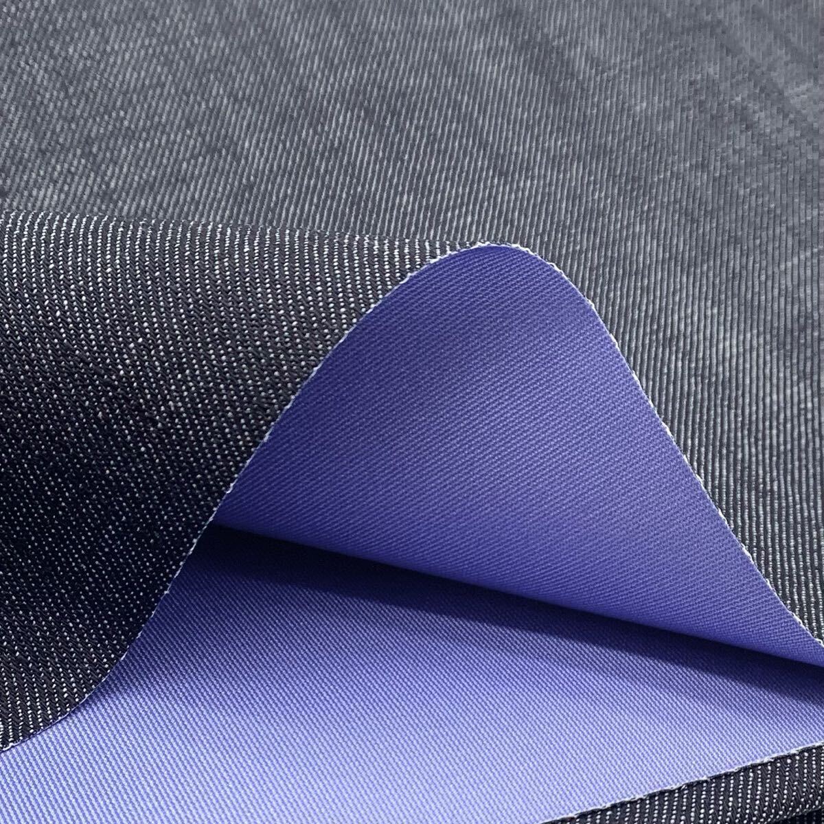 表面はインディゴブルーのデニムの生地で裏面はペールブルーのビニールが貼ってあります。