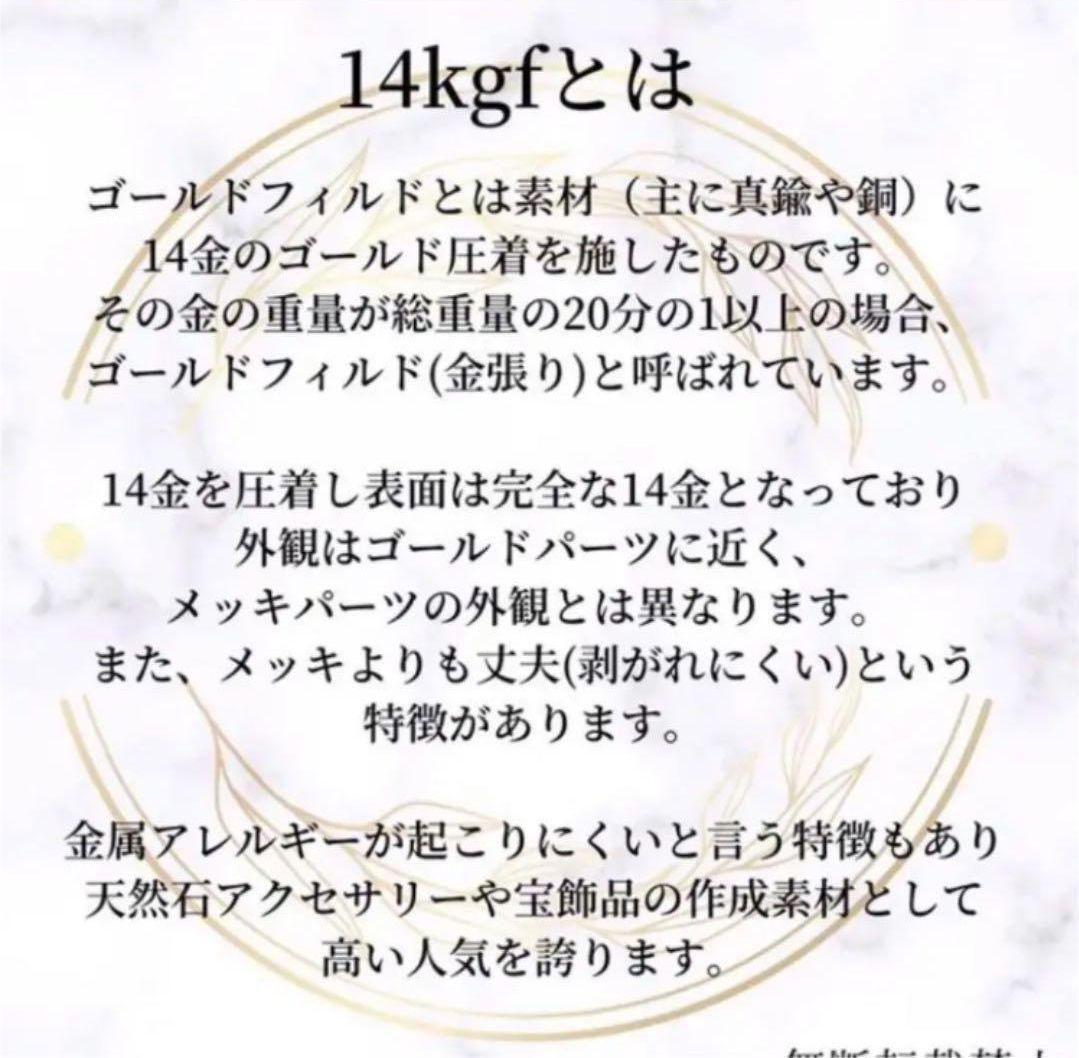 ゴールドフィルドとは素材(真鍮)に14金のゴールド圧着を施したもので、その金の重量が総重量の20分の1以上の場合、ゴールドフィルド(金張り)と呼ばれます。金メッキよりも丈夫(剥がれにくい)という特徴があります