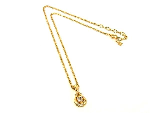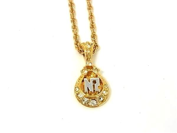 ■美品■ NINA RICCI ニナリッチ ロゴモチーフ ラインストーン ネックレス ペンダント アクセサリー レディース ゴールド系 DG9136