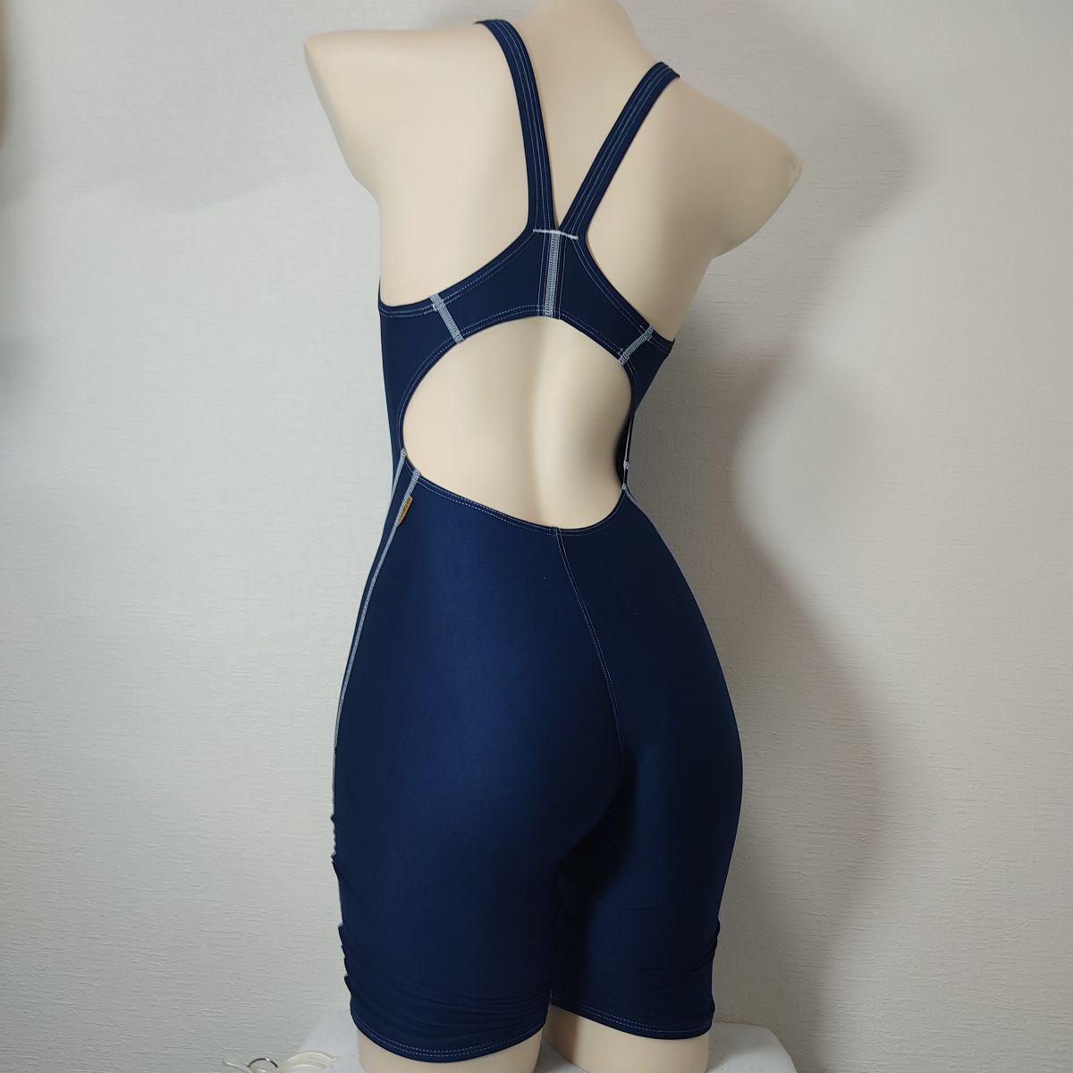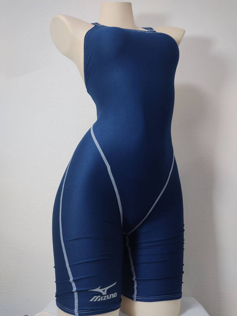 25*ミズノMIZUNO女子競泳水着(M)★朝日スイミングクラブ指定★オープンバック光沢ネイビー濃紺ホワイト白ステッチ★伸縮性あり男性も
