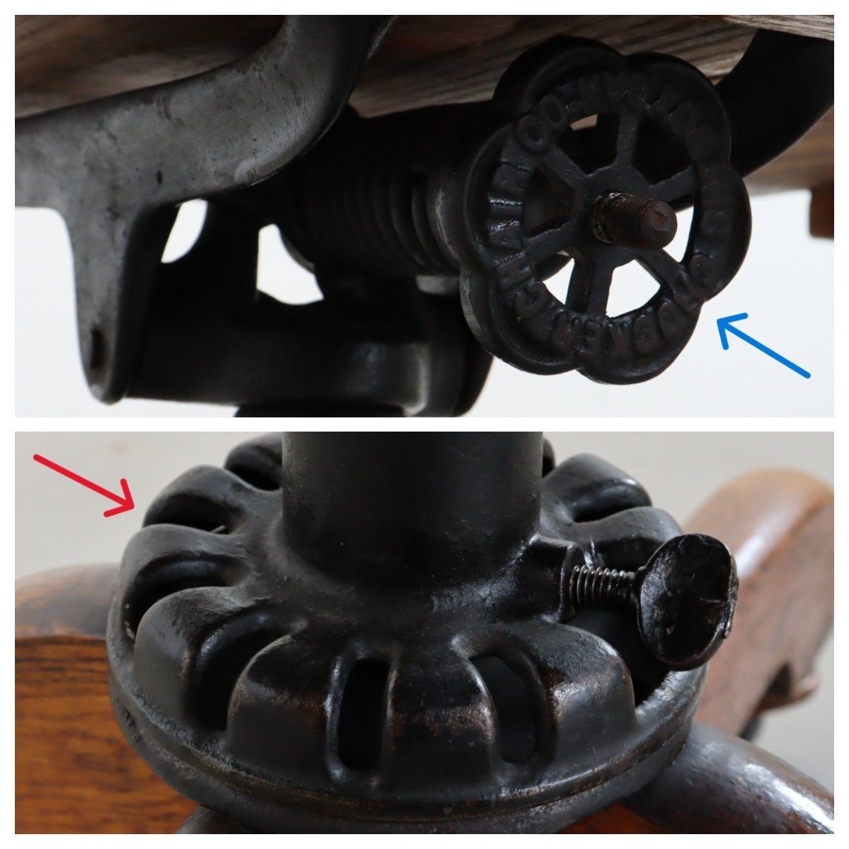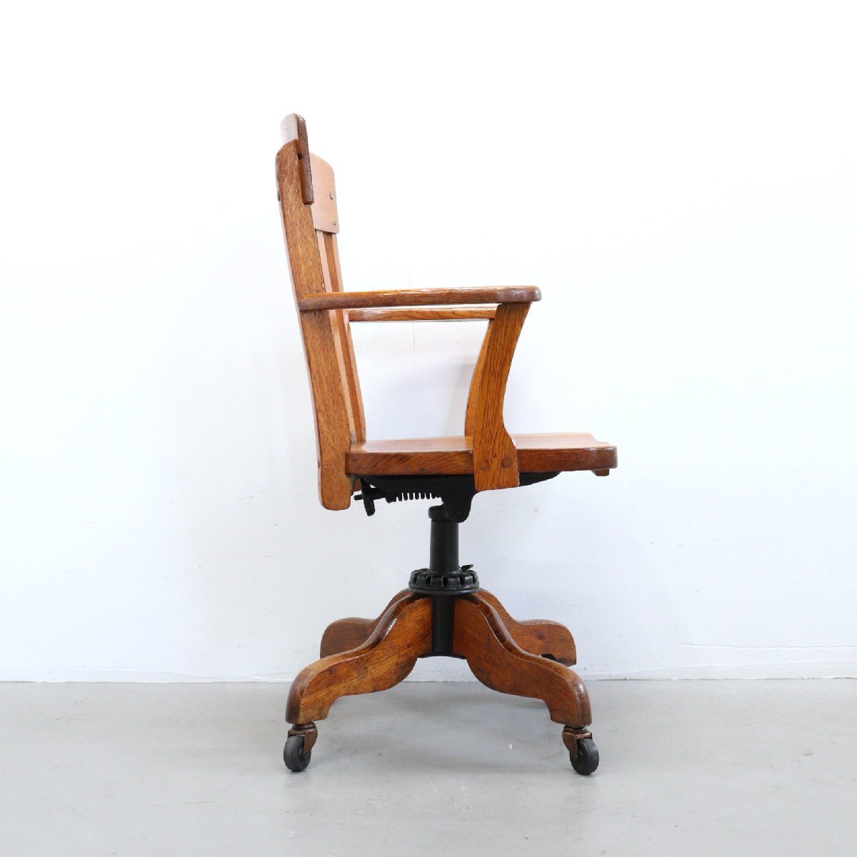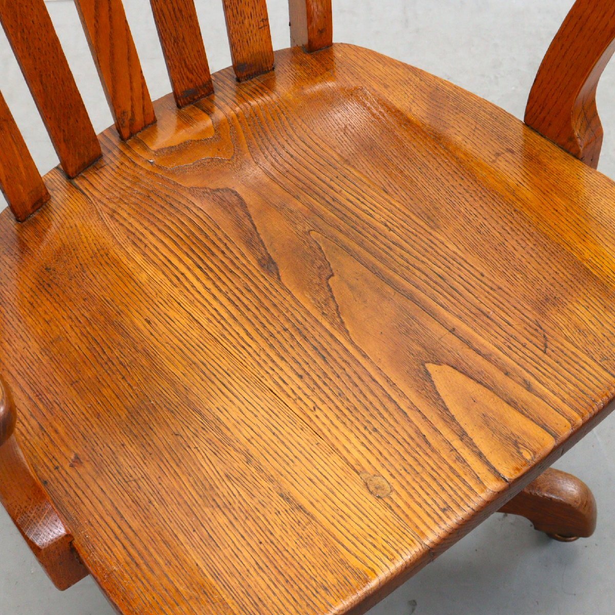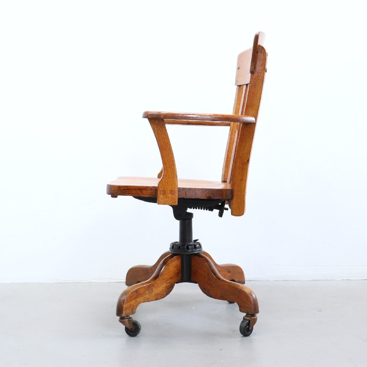 | 商品説明 explanation | 木製のヴィンテージ デスクチェアです。 詳しい年代は不明ですが、推定1930年~1950年以前に主にアメリカの図書館やオフィスなどで使用されていた椅子になります。 座面の高さとリクライニングのかたさを調整できます。 木材の風合いが良く、重厚感のあるオーセンティックなデザインです。 ご自宅やお店などにいかがでしょうか。 |