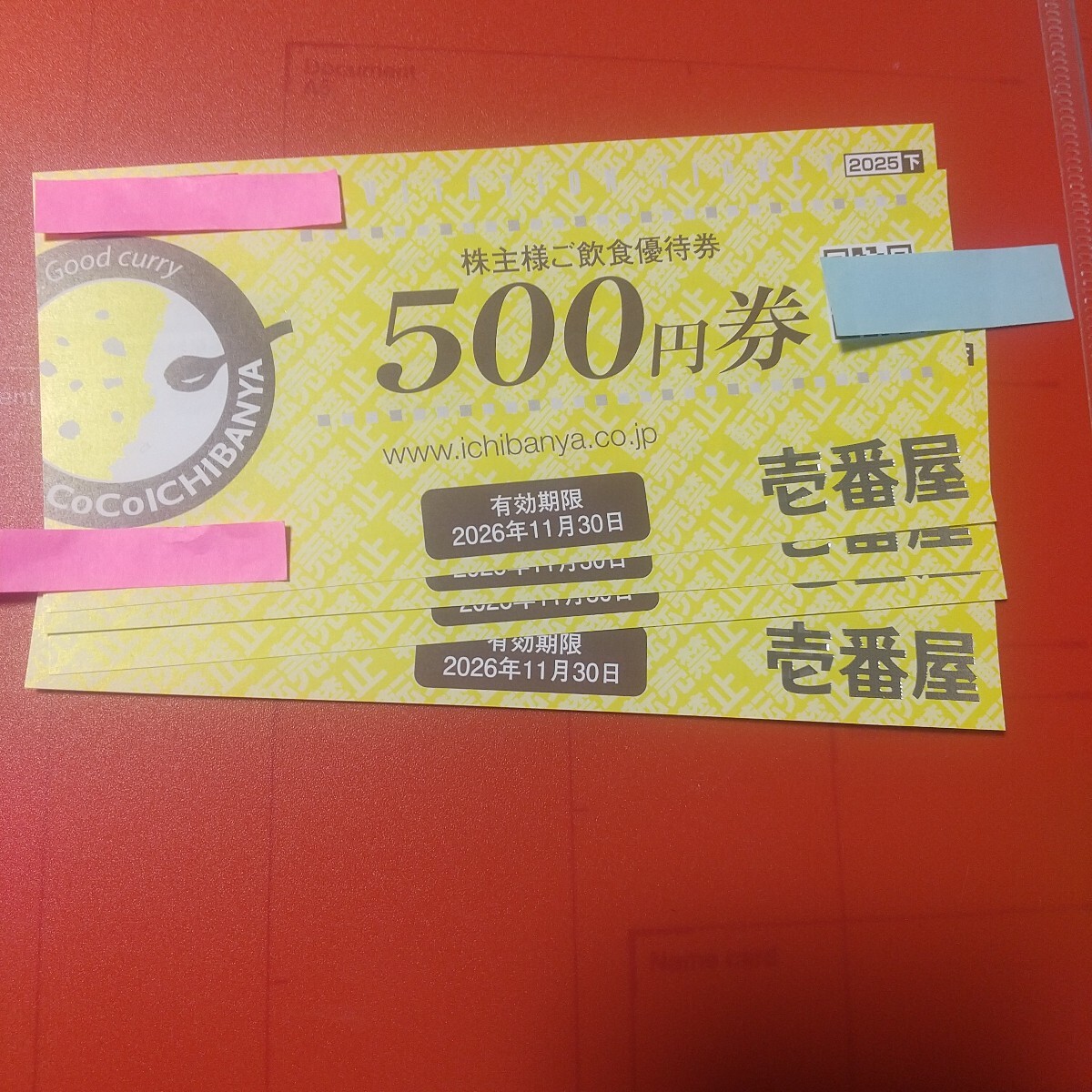 最新★CoCo壱番屋ココイチ株主優待券 2,000円分(500円券×4枚)です。