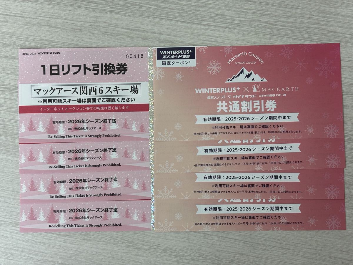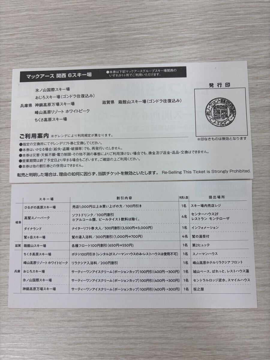 2026年 マックアース関西6スキー場 1日リフト券4枚 共通割引券付 氷ノ山国際 おじろスキー場 神鍋高原 峰山高原リゾート ちくさ高原 箱根山