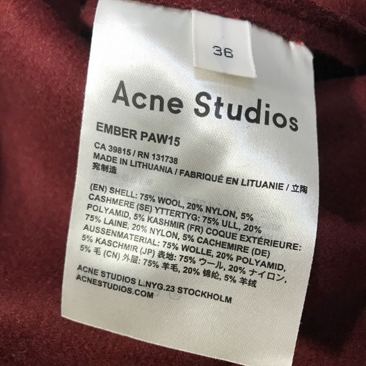 《良品◎》ACNE STUDIOS アクネスタジオ★ウールカシミヤブレンド*ガウンコート*ジャケット*ボルドー*サイズ36(LA3126)◆S80