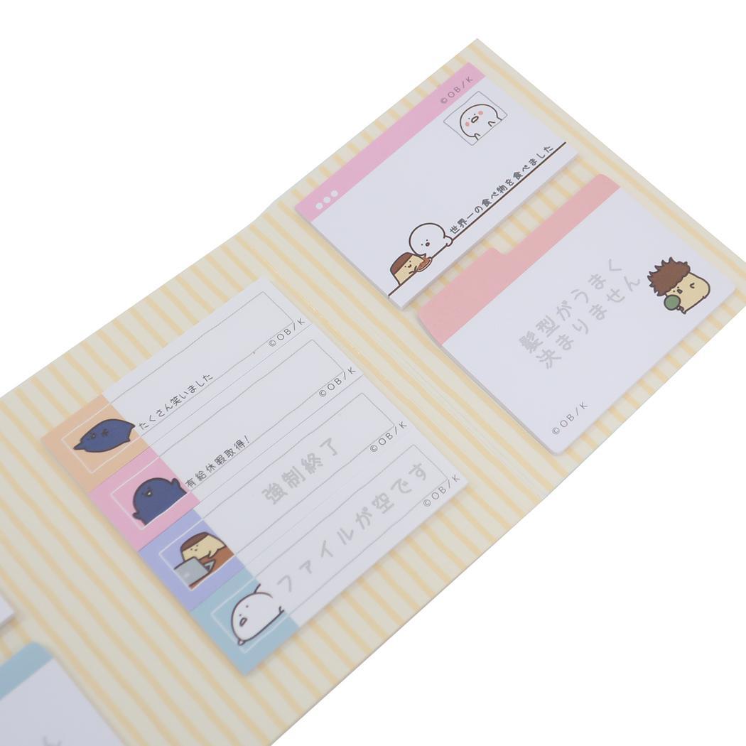 疲れた大人に送るデスク周りグッズ YouTubeやLINEスタンプで人気上昇中の癒し系キャラクター[お文具といっしょ]グッズにまたまた可愛いnewアイテム登場こちらは人気アイテム[パタパタ付箋]ブック型になったメモを開いていくと150枚(10柄各15枚)のメモがセットされてます。その時の気分や用途や渡す相手に合わせてデザインを選んじゃおう。可愛い文房具いろいろあるのでお気に入りを揃えてくださいサイズ:約70x90x12mm(10柄各15枚 計150枚)[Made in Japan]