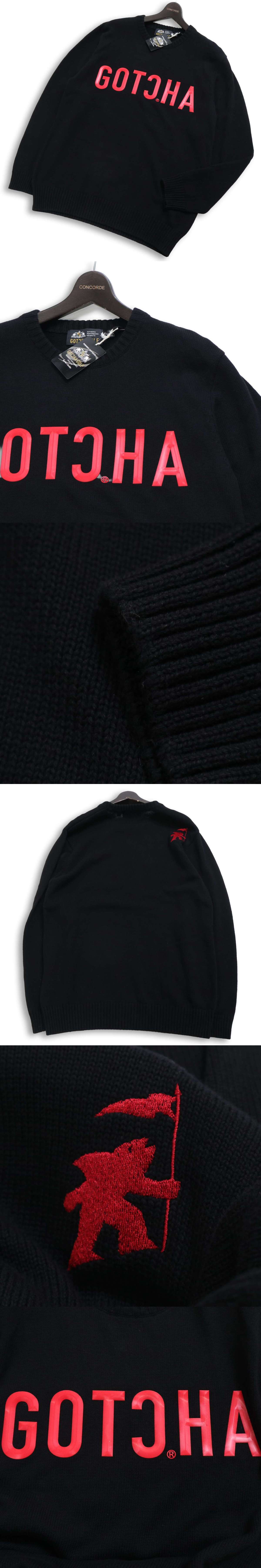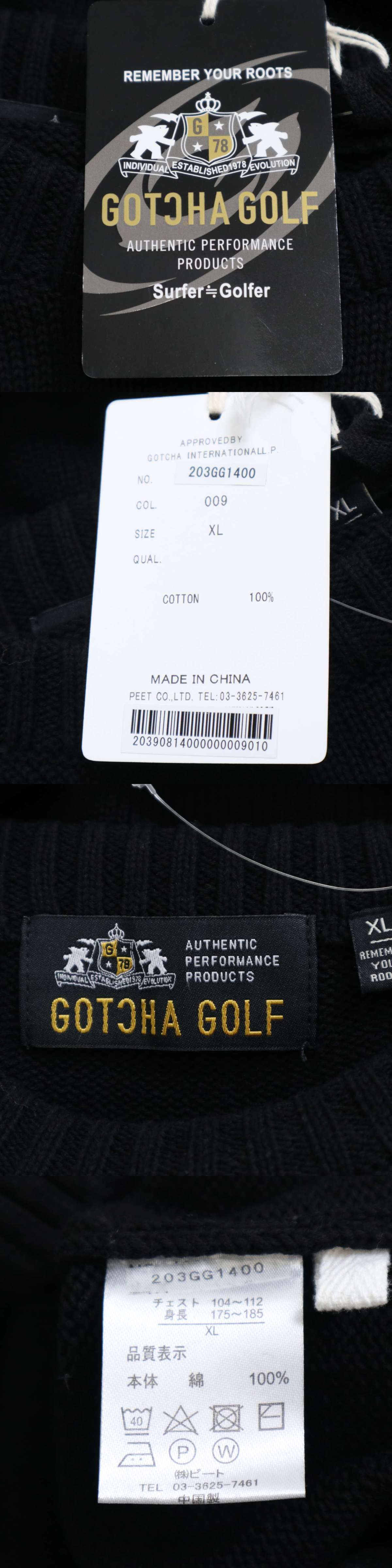 【新品 未使用】 GOTCHA GOLF ガッチャ ゴルフ 通年 ロゴ★ コットン ニット セーター Sz.XL メンズ 黒 大きいサイズ サーフ