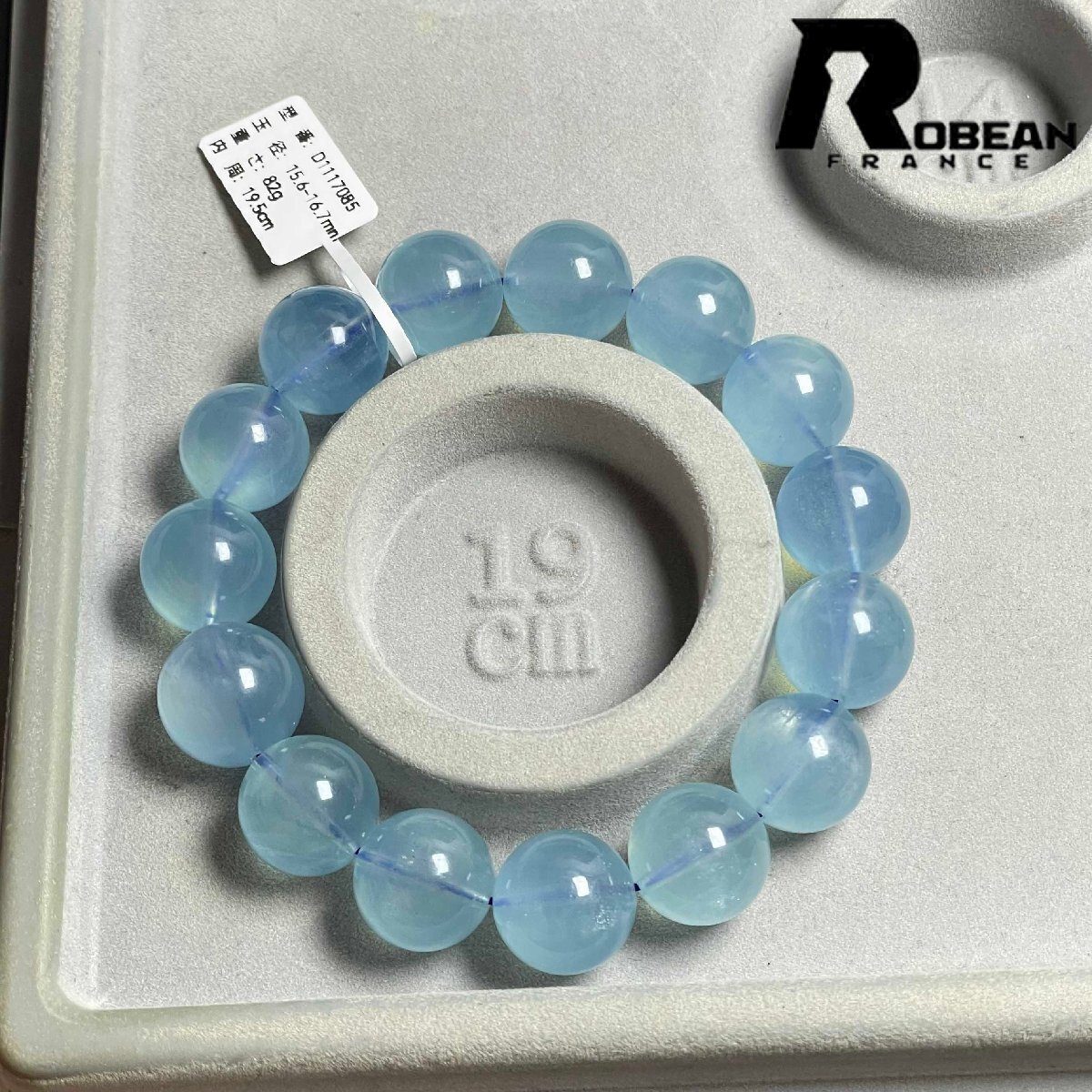 【限定一点】貴重 EU製 定価33万円★ROBEAN・ブルーアクアマリン★パワーストーン ブレスレット 天然石 お守り 15.6-16.7mm D1117085