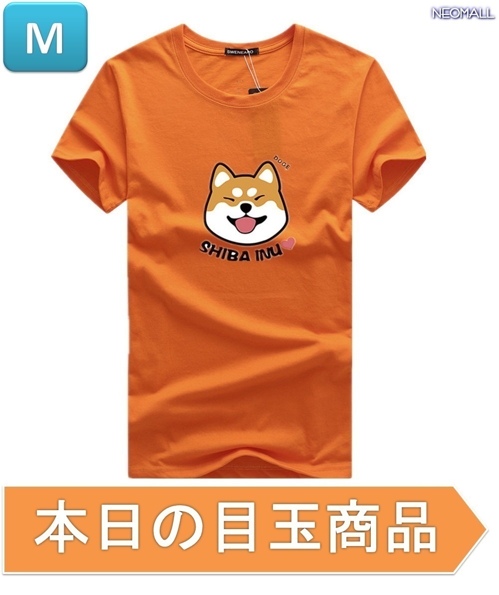 本日のお買得 ☆ 丸首 半袖 Tシャツ【345】 オレンジ Mサイズ トップス シャツ シンプル イラスト シルエット 春夏