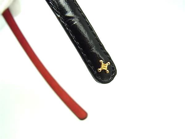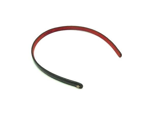 ■極美品■ DOUBLE CODE ダブルコード クロコダイル型押しレザー カチューシャ ヘアバンド ヘアアクセサリー ブラック系 DJ5955