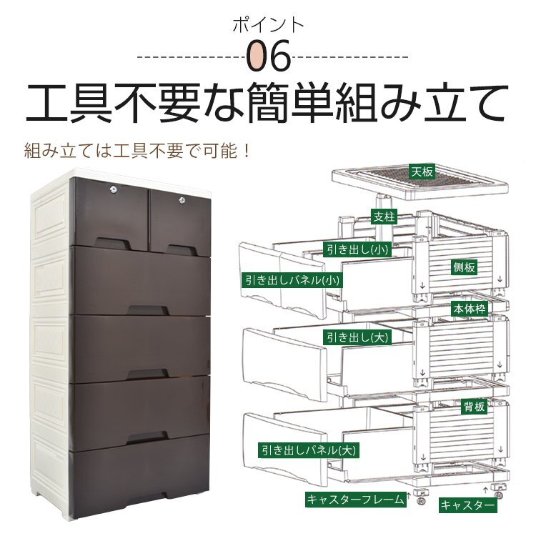 送料無料 収納ボックス 収納ケース 5段 タンス 収納 ボックス 衣類 衣装 ランドリー ケース チェスト プラスチック 組み立て式 整理 ny423