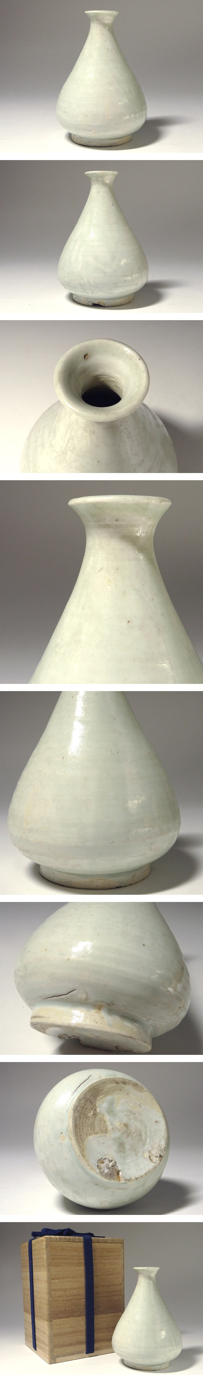 玉壺春形の美しい器形に青味を帯びた温かみのある釉調の白磁が素朴で実に美しい逸品になります。