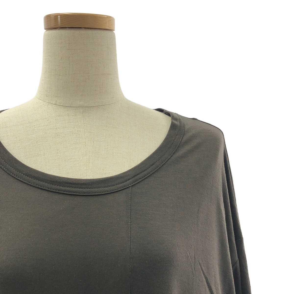 YOHJI YAMAMOTO POUR HOMME / ヨウジヤマモトプールオム | 変形 アシンメトリー クルーネック ロング ニット | オリーブ | メンズ