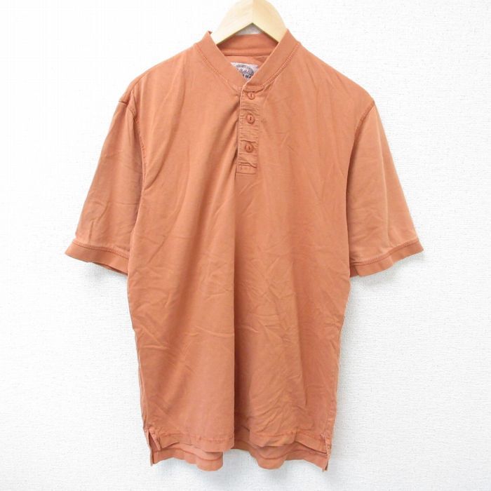【商品名】 L★古着 カベラス 半袖 Tシャツ メンズ 無地 コットン ヘンリーネック 茶