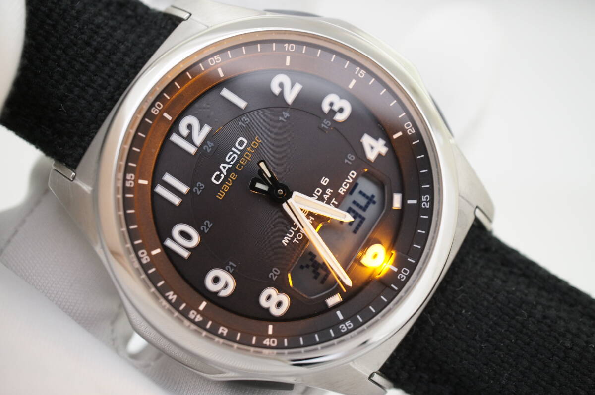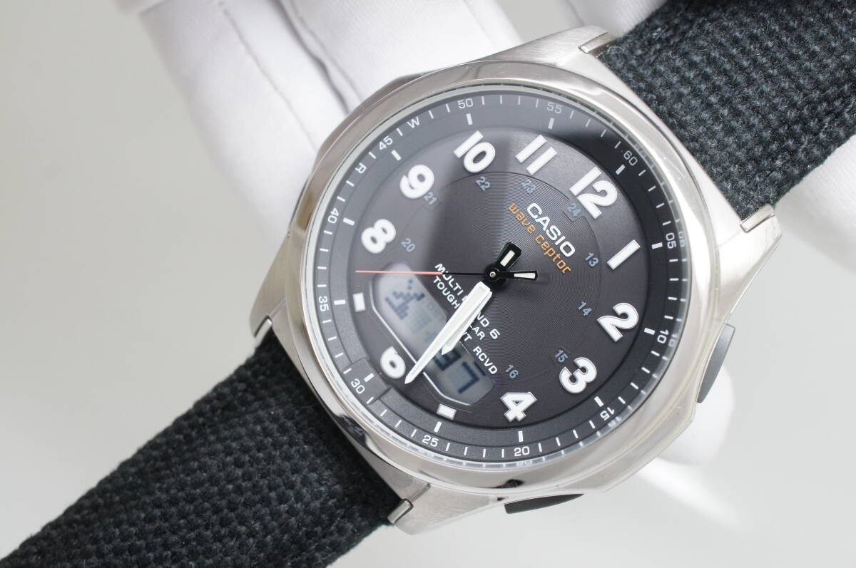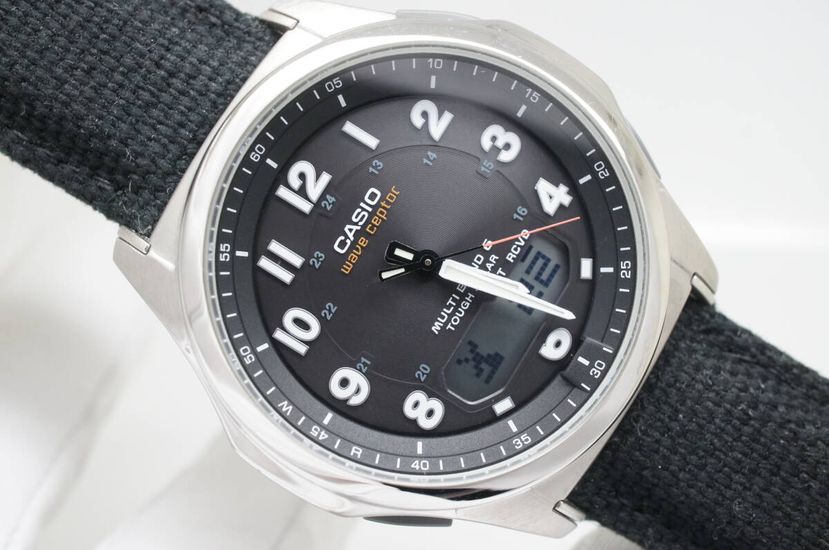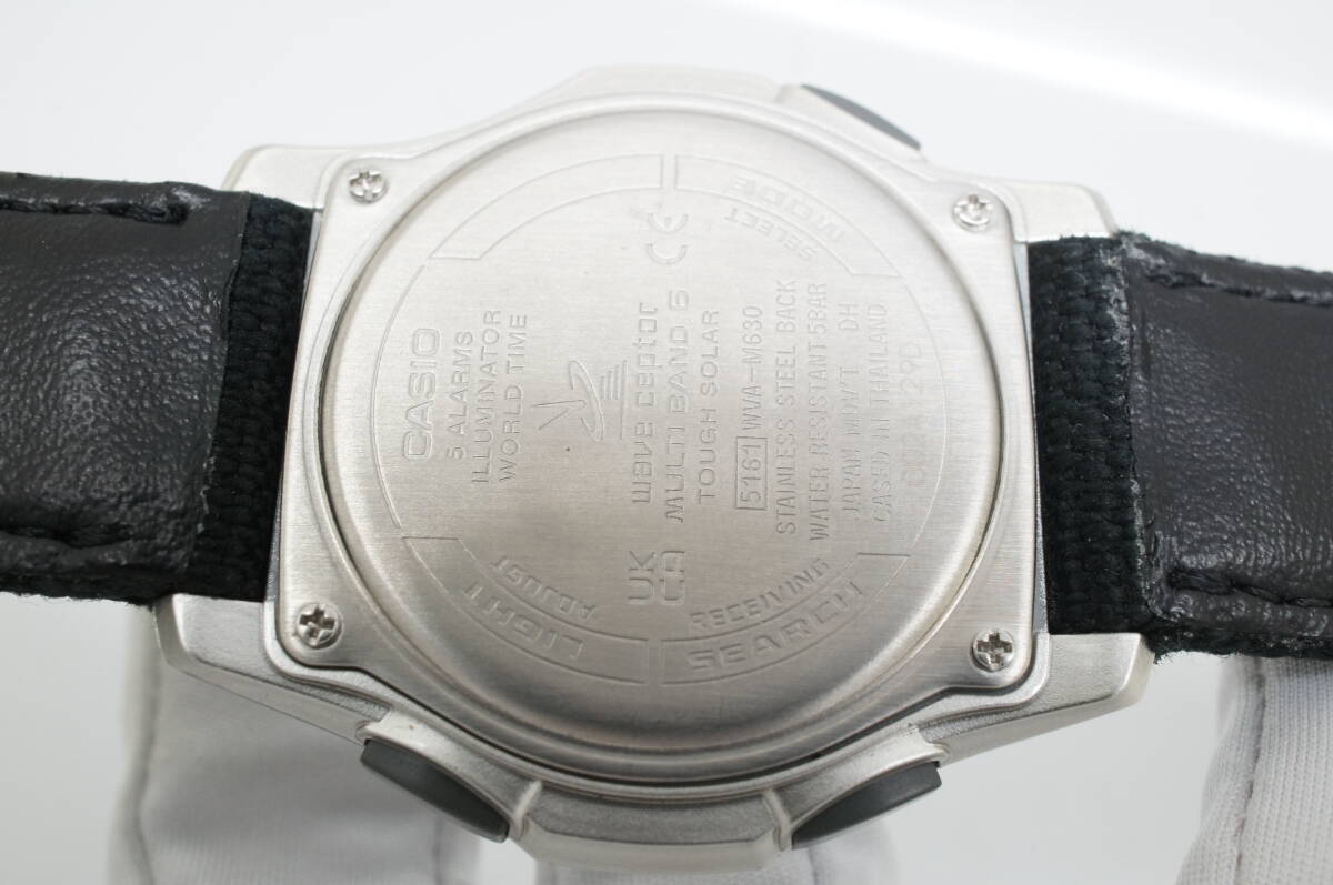 W57●作動良好 美品 CASIO カシオ wave ceptor ウェーブセプター WVA-M630 電波ソーラー マルチバンド6 アナデジ メンズ腕時計 シルバー